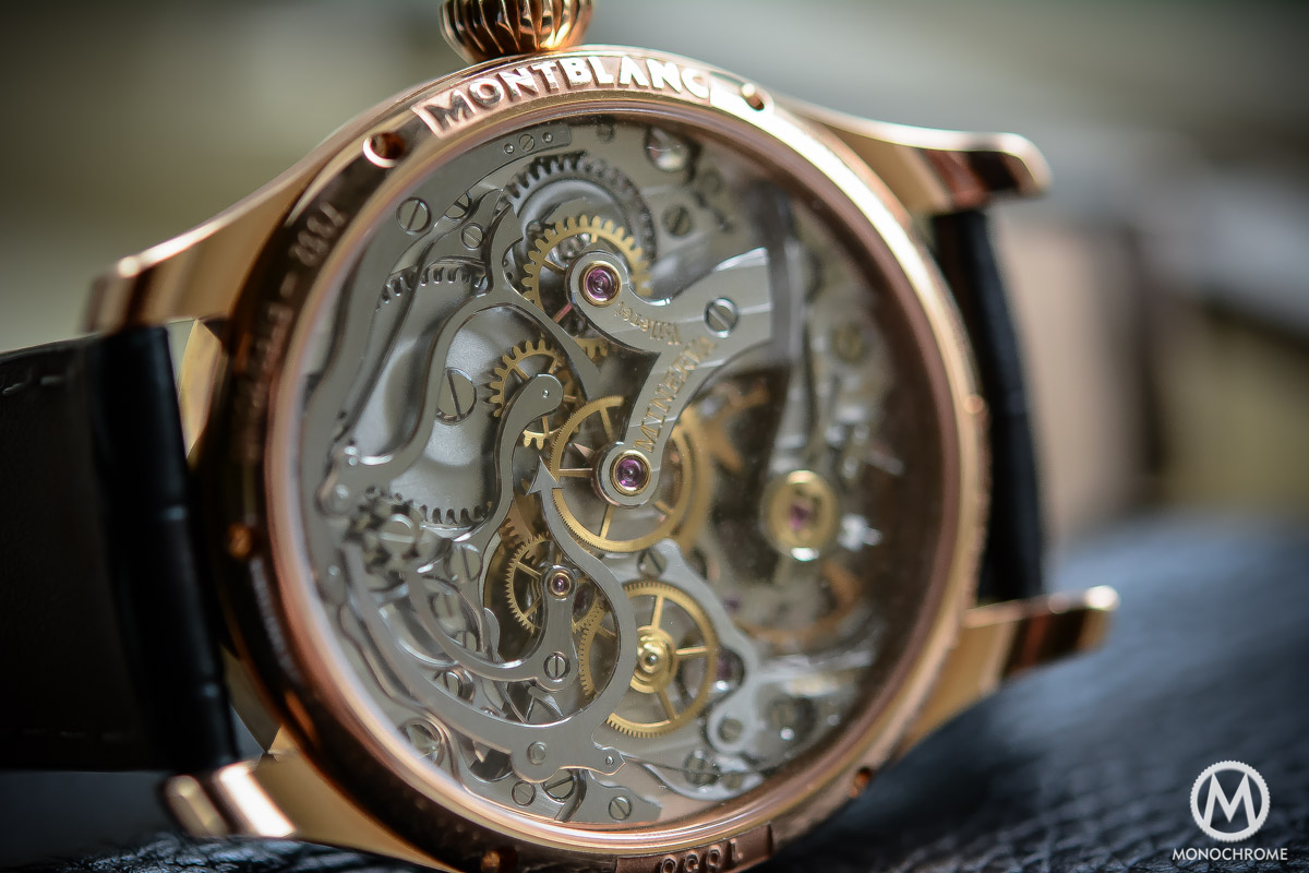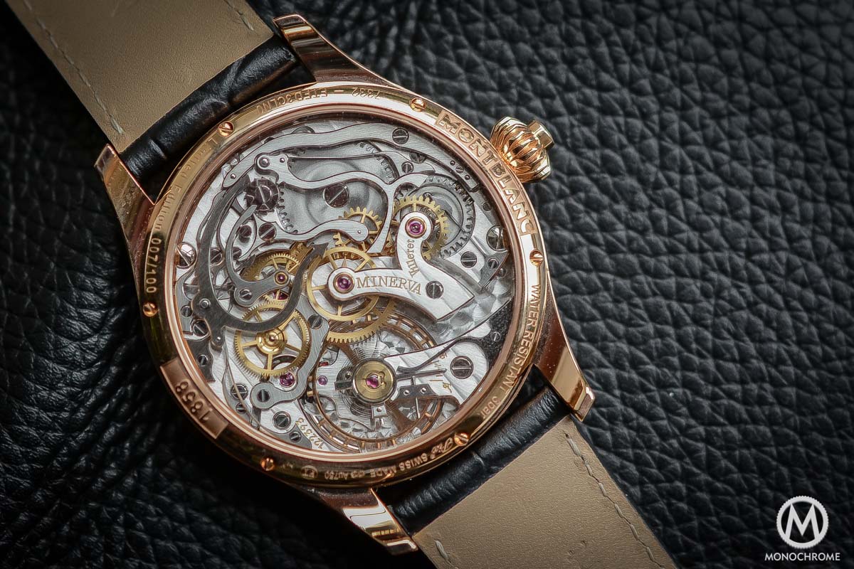 Excuse this burst of enthusiasm, but here, at Monochrome-Watches, we have a thing for the Montblanc Villeret Chronographs. Throwback… 2006, the Richmont Group takes over an antique and iconic name: the Manufacture Minerva, famous for their chronograph movements, including the legendary 13-20 CH. 2007, Richemont Group affects Minerva to Montblanc – and here begins a story. The reason for this takeover was to offer Montblanc a real production capacity, instead of relying on out-sourced movements and to implement a high-end collection (now known as the Villeret collection). Well, this said, we could have expected Montblanc to create nice watches with newly developed calibres – and that’s (partially) what they’ve been doing. But they also add something superb to the collection: bringing back to life the mythical Minerva chronograph movements, with an almost untouched architecture (meaning one of the nicest ever) and with a matching Haute Horlogerie manual finish… Delightful. Examples of the work done since: the Montblanc Vintage Pulsographe for Only Watch 2011, the Montblanc Collection Villeret 1858 Vintage Chronographe (which also is the ancestor of the one we’re about to review) or the recent Montblanc Meisterstück Heritage Pulsograph with Minerva Monopusher Chronograph.