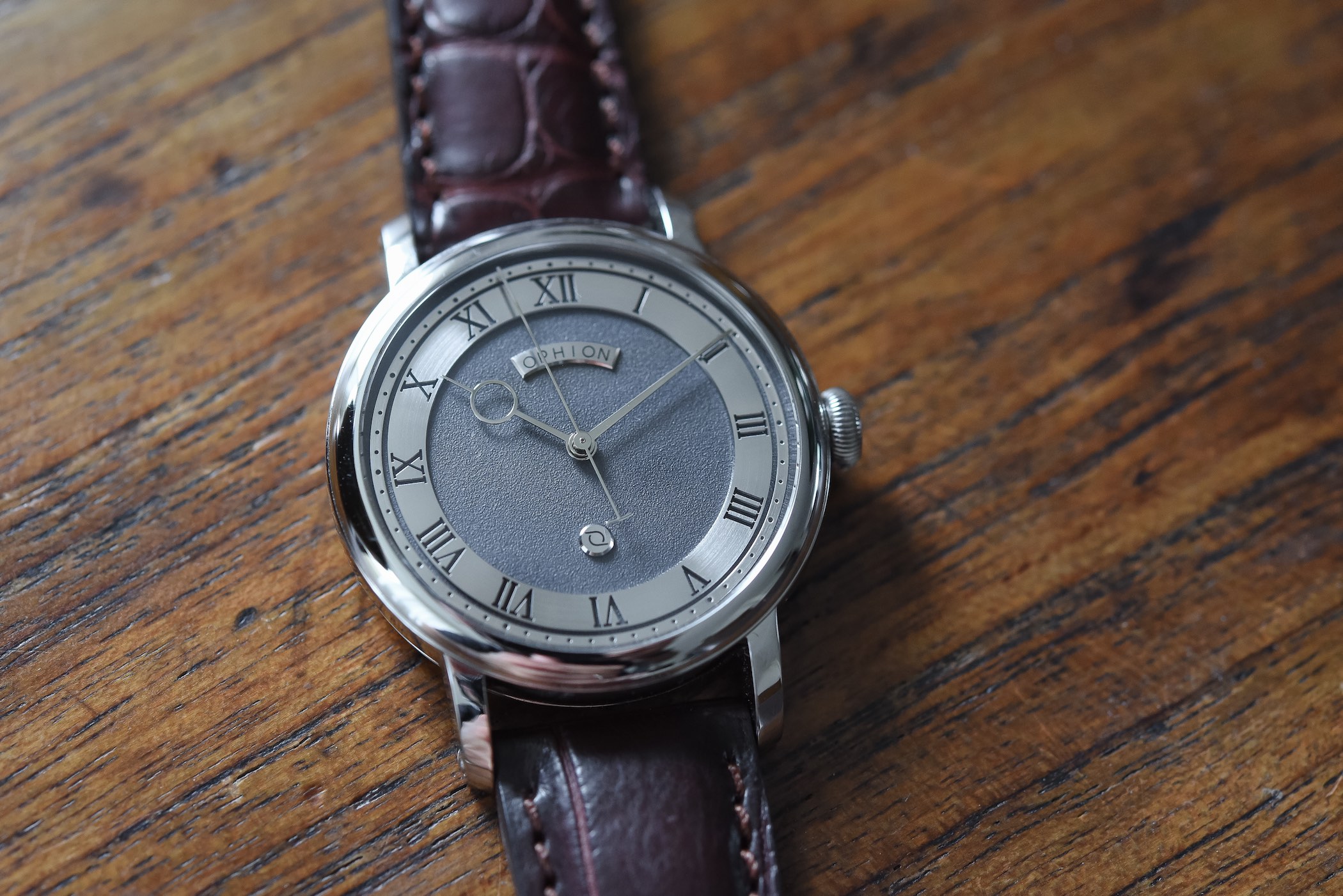 The Ophion OPH 786 isn’t per se a cheap watch and retails for EUR 1,890 (before taxes and shipping costs) for the granular grey dial and EUR 2,190 (before taxes and shipping costs) for the silver or blue guilloché dial. What it is, however, is one of the best quality/price ratios we’ve seen in a long time. A price that would correspond to a Longines or Baume & Mercier watch, but neither brand can offer the same attention to detail or the same level of decoration.