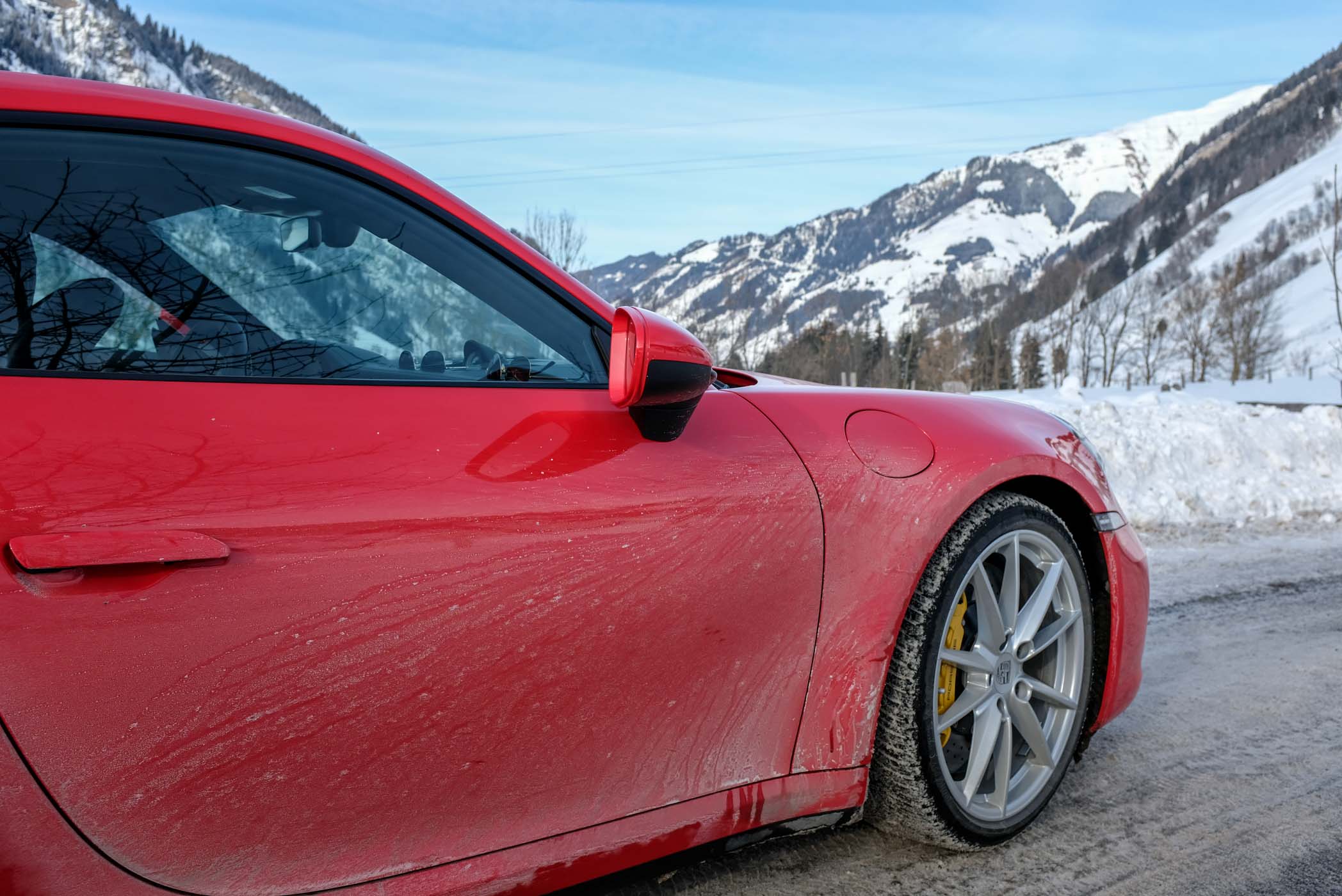 Wearing a new watch might not make my heart beat faster, but I can assure you that the idea of driving the new 992 did! Although I’ve had a bit of experience driving various Porsche cars, my main reference is my own 997 Carrera S, which is equipped with a manual gearbox. When I compare the new 992 to my old 911, it could feel like the difference between night and day, but it doesn’t. When driving the new 992 it still feels like that good ol’ 911 with its strange positioning of the engine (behind the rear axle). However, the new one packs many more electronic safety features than the previous 911 (the 991) and it feels so much more safe and in control. The new ‘wet mode’ certainly helps, but even in ‘normal’ or ‘sport’ mode, the car handles magnificently on snowy and icy roads.