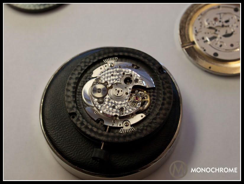 For the entire Korona collection, Sarpaneva uses the Soprod A10 as base movement. This movement is designed as competitor to the ETA 2892 and 2824 and virtually all dimensions are the same. One big difference is that a basic Soprod A10 has a factory finish of a higher standard than ETA and like the ETA calibers, it is available in ebouche.