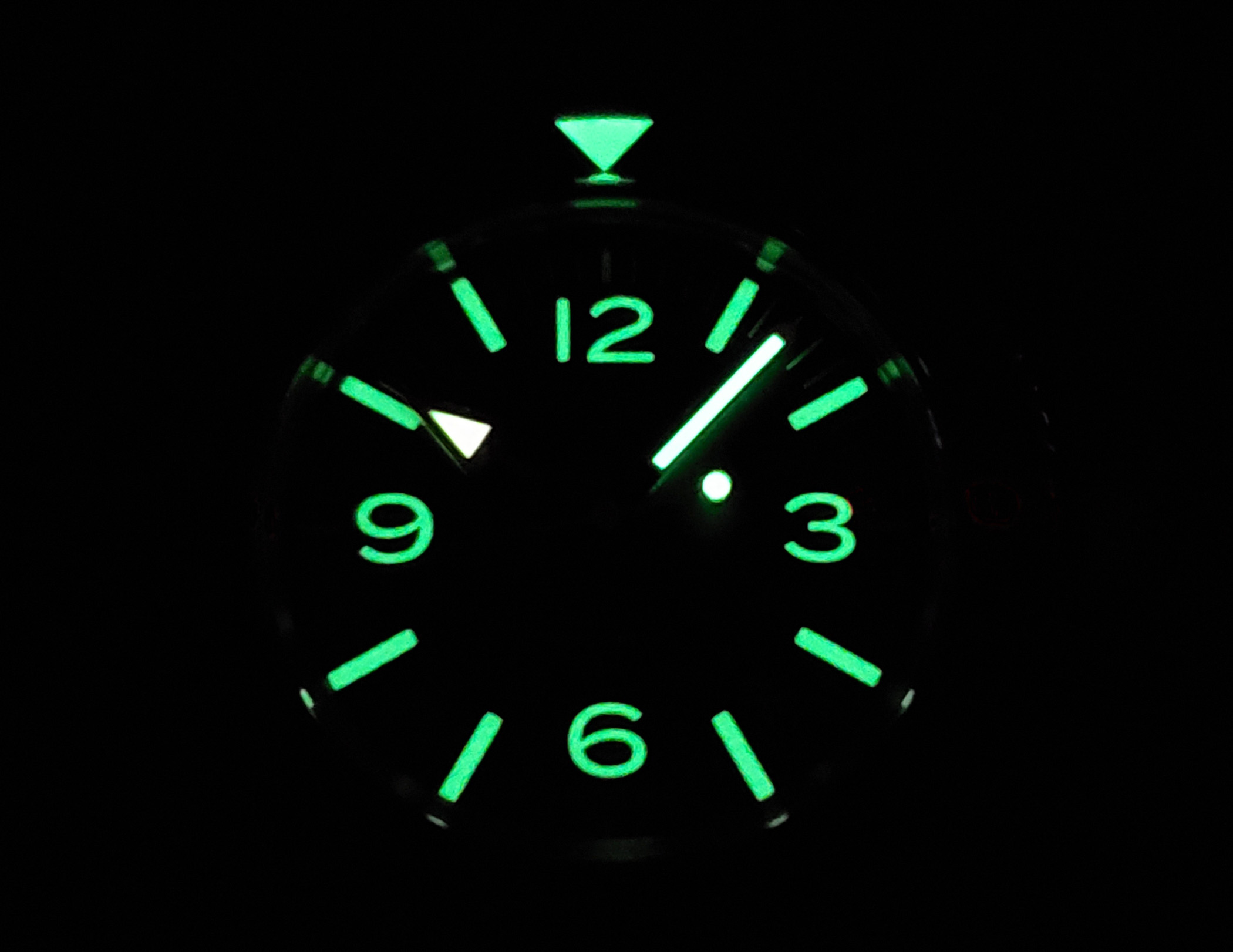 There is currently only one combination of dial and hands, although customization options will be available in the coming weeks. What we currently have is a matte black dial with vintage tan/brown indices and large Arabic numerals printed at 12, 3, 6 and 9 o’clock. Tan Super-LumiNova covers the four numerals and main indices every five minutes, which glow in a bright green. You can also have your initials printed under 12 o’clock (up to three letters/numbers) with the choice of a few different fonts.
