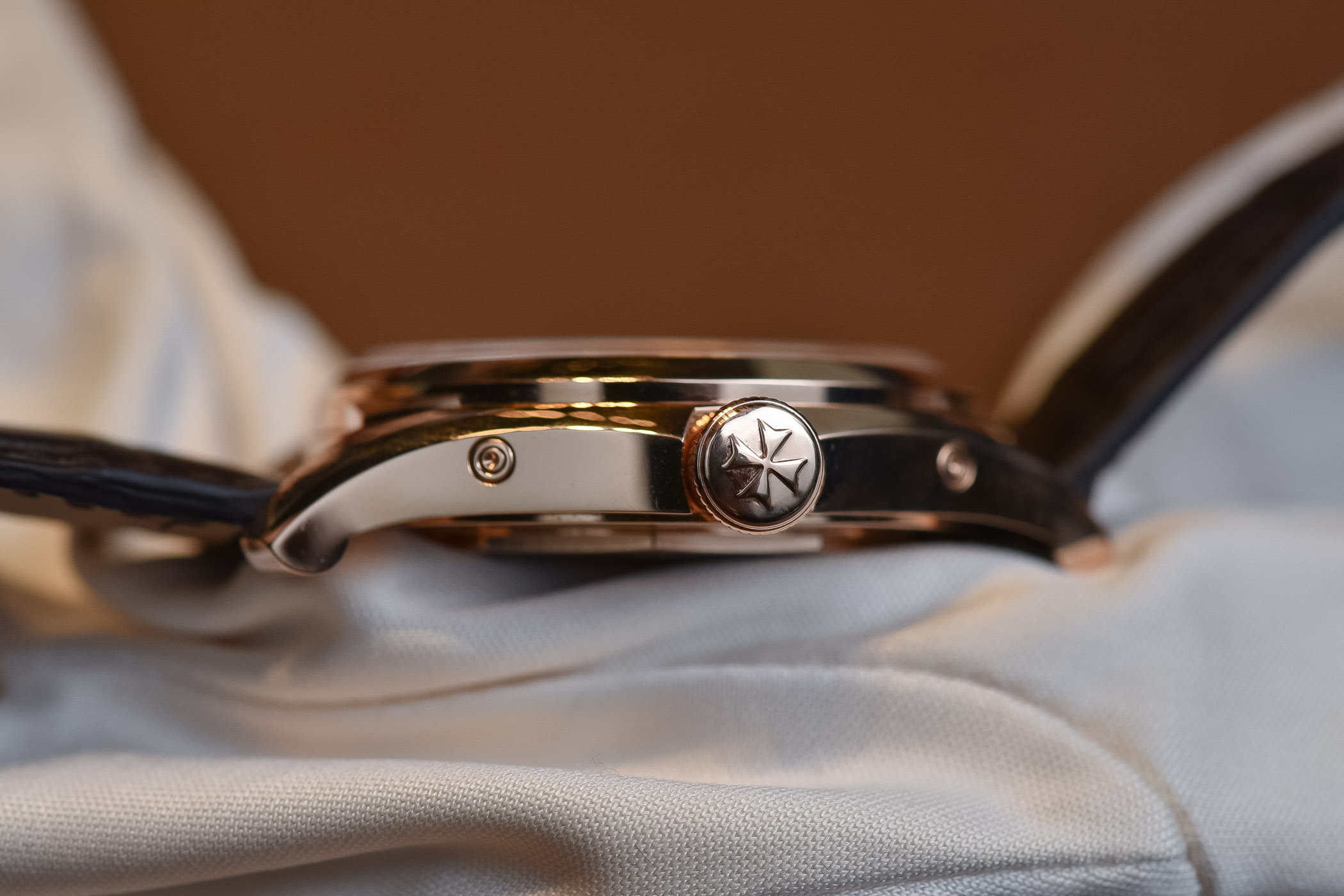 As for the movement, Vacheron Constantin has a different strategy here than with the simpler 3-hand model. No outsourced movement here but an in-house, Hallmark of Geneva-certified automatic calibre. Although both watches might be in the same collection, they don’t play in the same league. Again, I was quite surprised, at first, by this choice. After thinking about it, I think I understand the reasons behind this strategy.