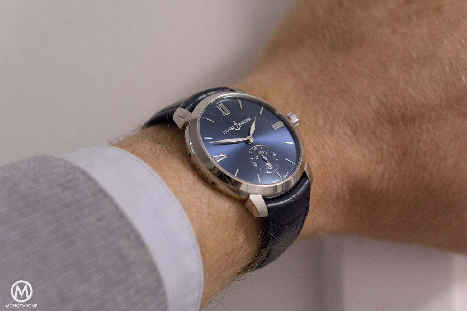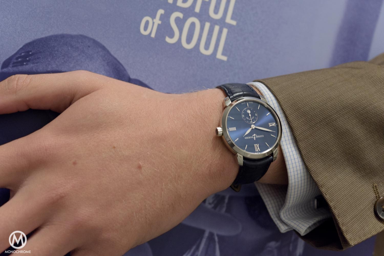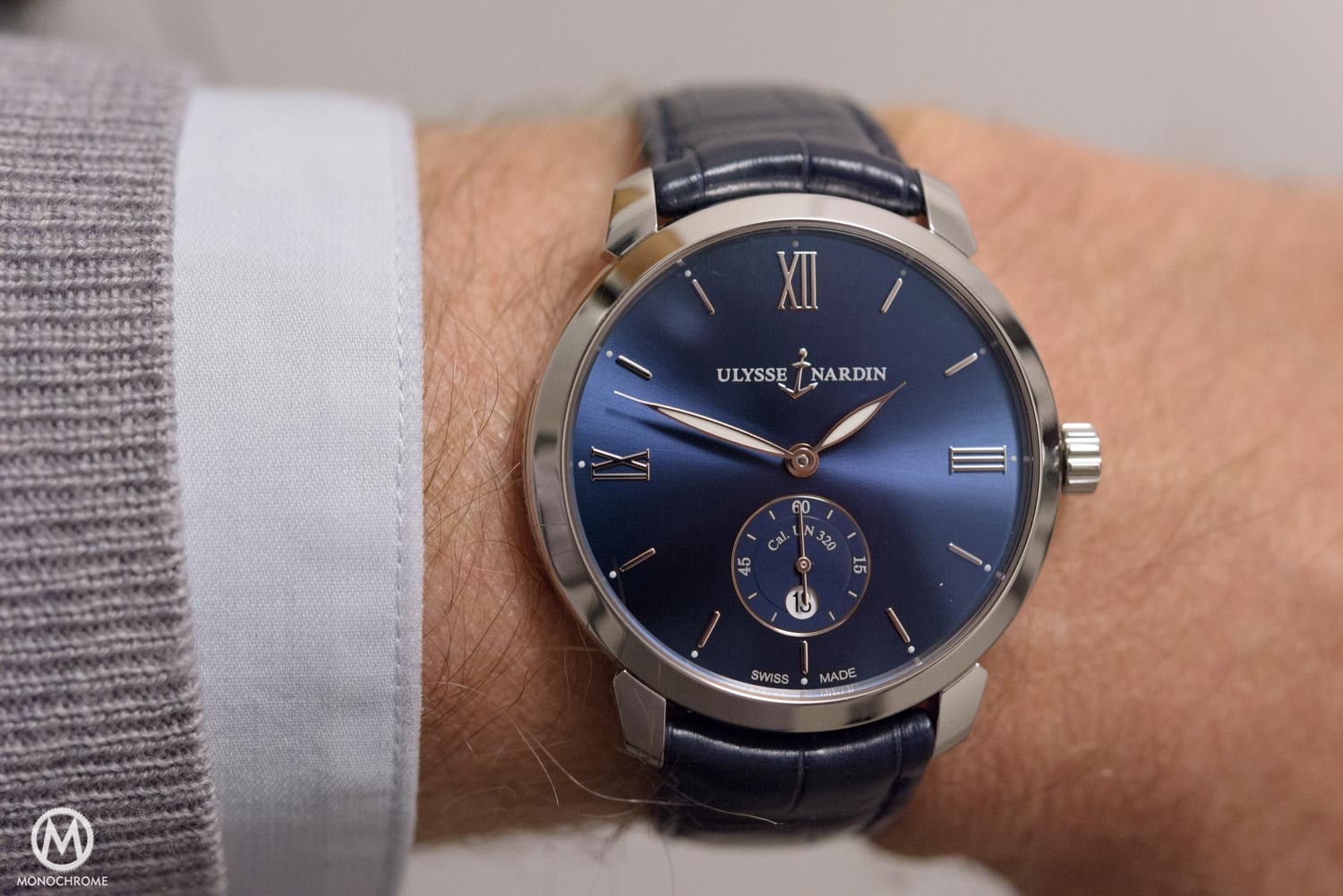 The Ulysse Nardin Classico Manufacture in steel with blue sun-ray dial is a unique combination of modern elegance, refinement, technical features and design characteristics. It makes desk workers like me, feel like a sailor in a suit. So I have added it to my personal wish list. I like it that much.