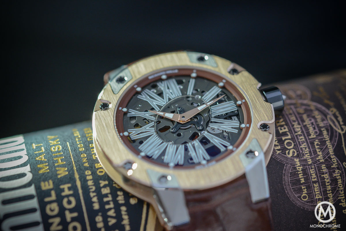 - A not-too-skeletonized watch from the front but a superb open-work on the back
