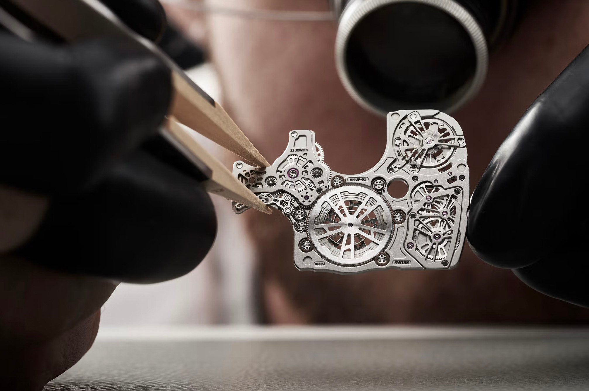 Richard Mille and Ferrari teamed up in 2021, a natural alliance forged by two brands obsessed with precision, reliability and innovation. To celebrate this partnership with Ferrari, RM pushed the envelope to the extreme and created the hyper-flat 1.18mm calibre RM UP-01 in collaboration with the laboratories of Audemars Piguet Le Locle (formerly Renaud & Papi). Working alongside the Ferrari team and following countless prototypes and more than 6,000 hours of R&D and laboratory testing, the Richard Mille RM UP-01 materialised.