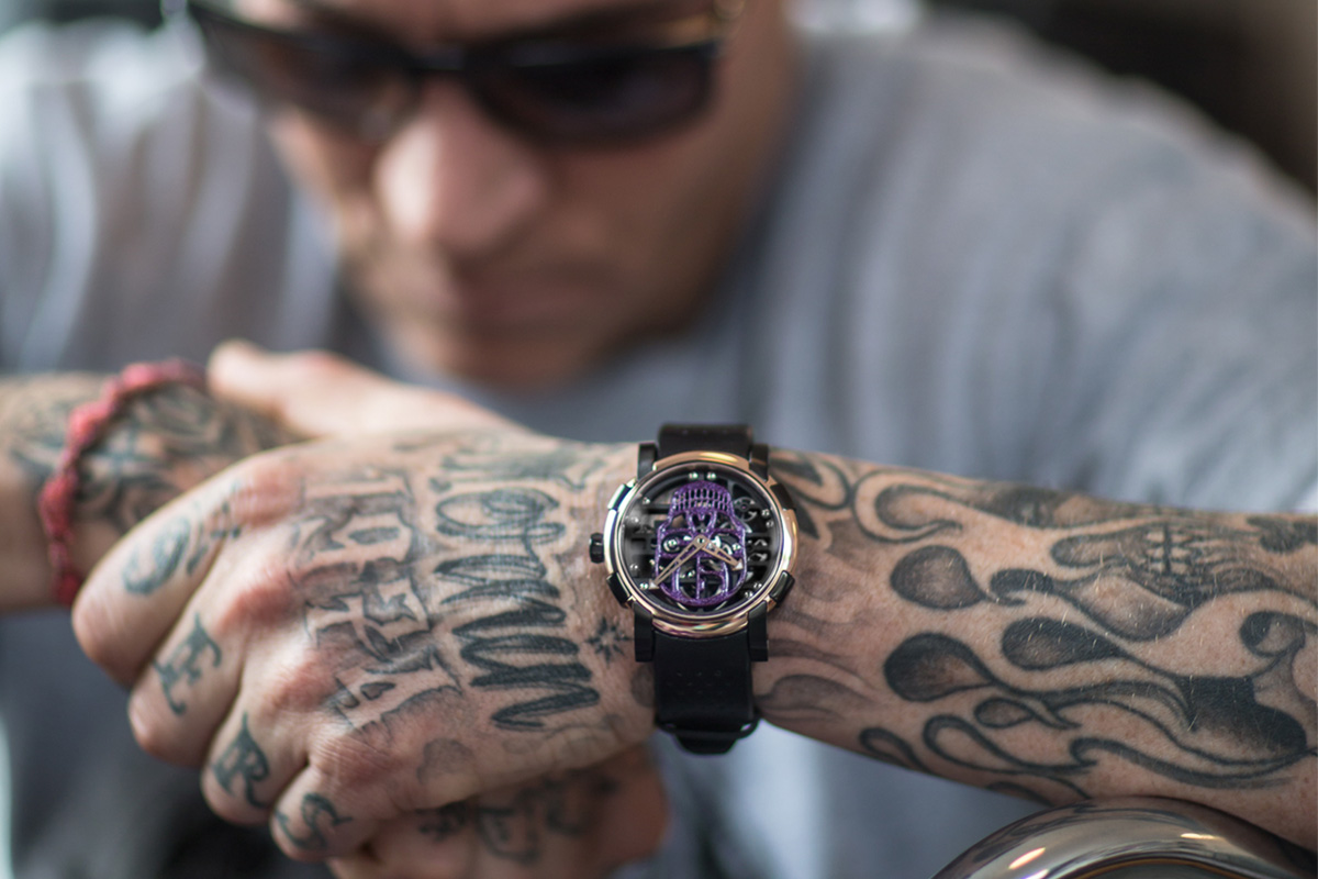 Many people who are watch enthusiasts also have other interests that they pursue with equal vigor. For some people it is cars, for some it is cigars or fine wines and for others motorbikes. For people who have worked very hard to achieve their independent goals of success or wealth, an of-the-production-line bike won’t be enough. Those riders usually turn to custom bike builders like Danny Schneider from HardNine Choppers to build something more personal, a customized Canadian Army Harley Davidson for instance. At Monochrome-Watches we applaud that ride to make a more personal statement in life, so let us point your attention to the RJ Romain Jerome H9C-DNA.