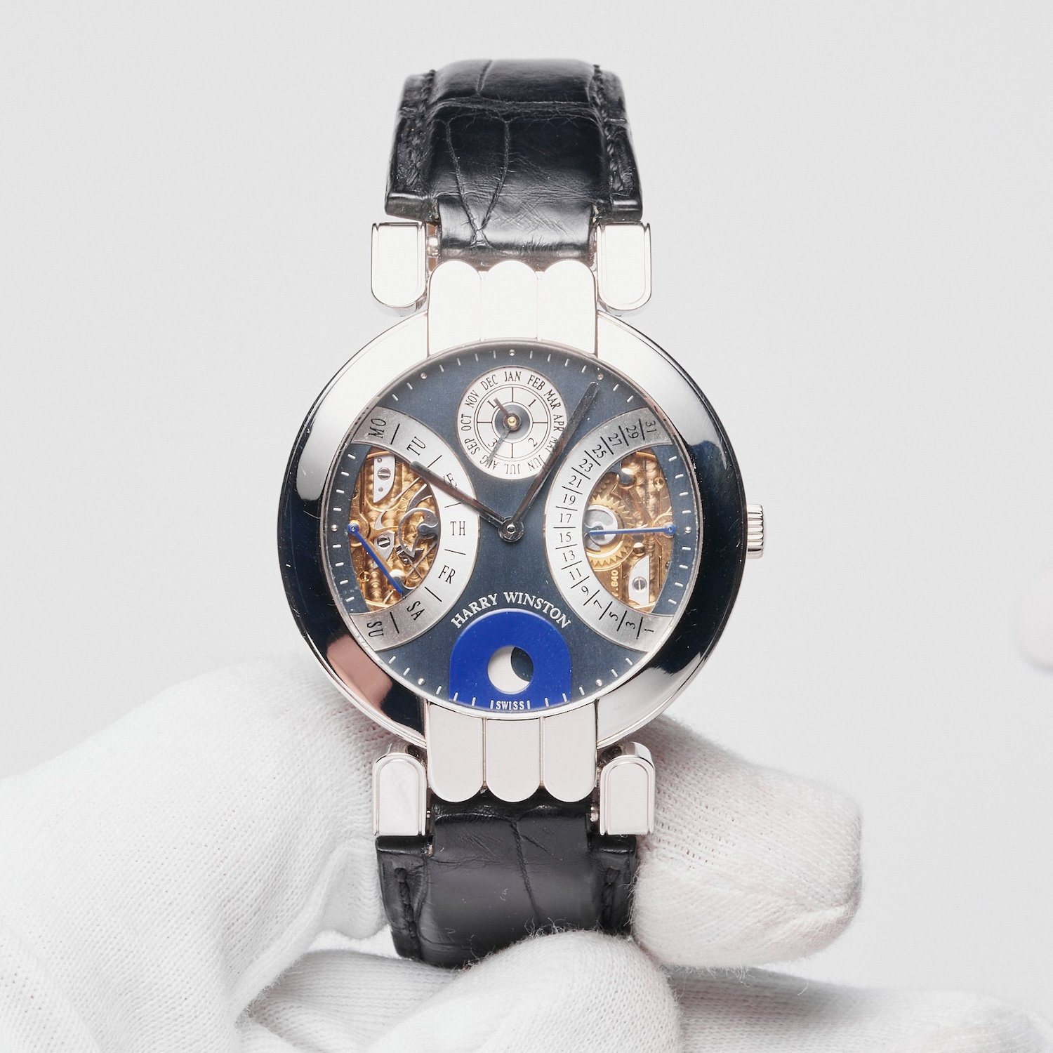 As we mentioned above, the first-ever module and complication developed by the man was the result of a collaboration with Jean-Marc Wiederrecht, who is today known as the head of complication specialist Agenhor, responsible for the Le Temps Suspendu module for Hermès or the high-tech Agengraph chronograph movement. The module was developed for Harry Winston, the brand releasing its own version of the bi-retrograde perpetual calendar at Baselworld in 1989. This display was a first for a wristwatch. These modules were fitted on top of either a GP3100 or Frédéric Piguet 71 base movement, and displayed the day (at 9 o’clock) and the date (at 3 o’clock) on semi-circular arches, with a retrograde hand, paired with a month/leap year sub-counter at 12 o’clock and a moon phase at 6 o’clock – and often, the inner part of the retrograde part was opened to reveal the mechanism, in particular the snail-shaped wheels.