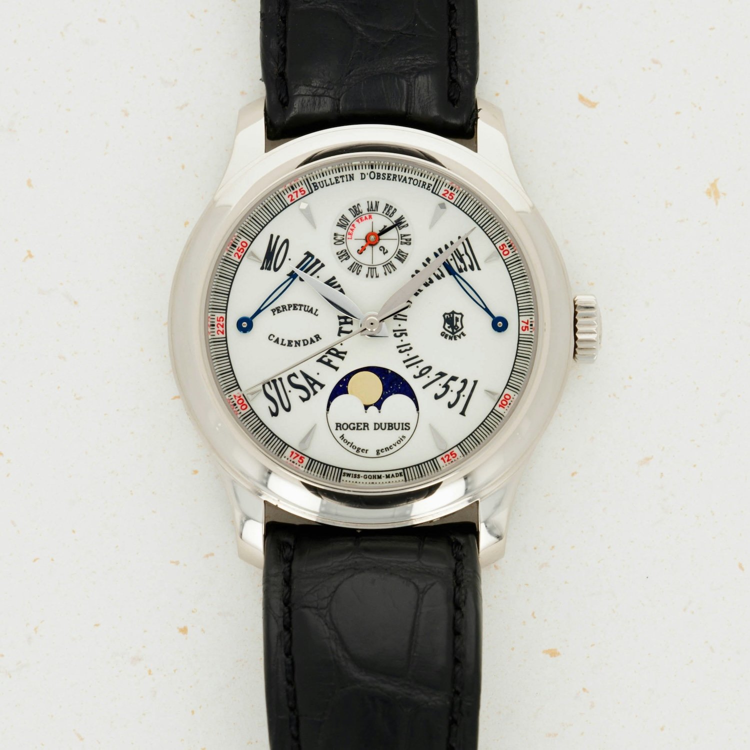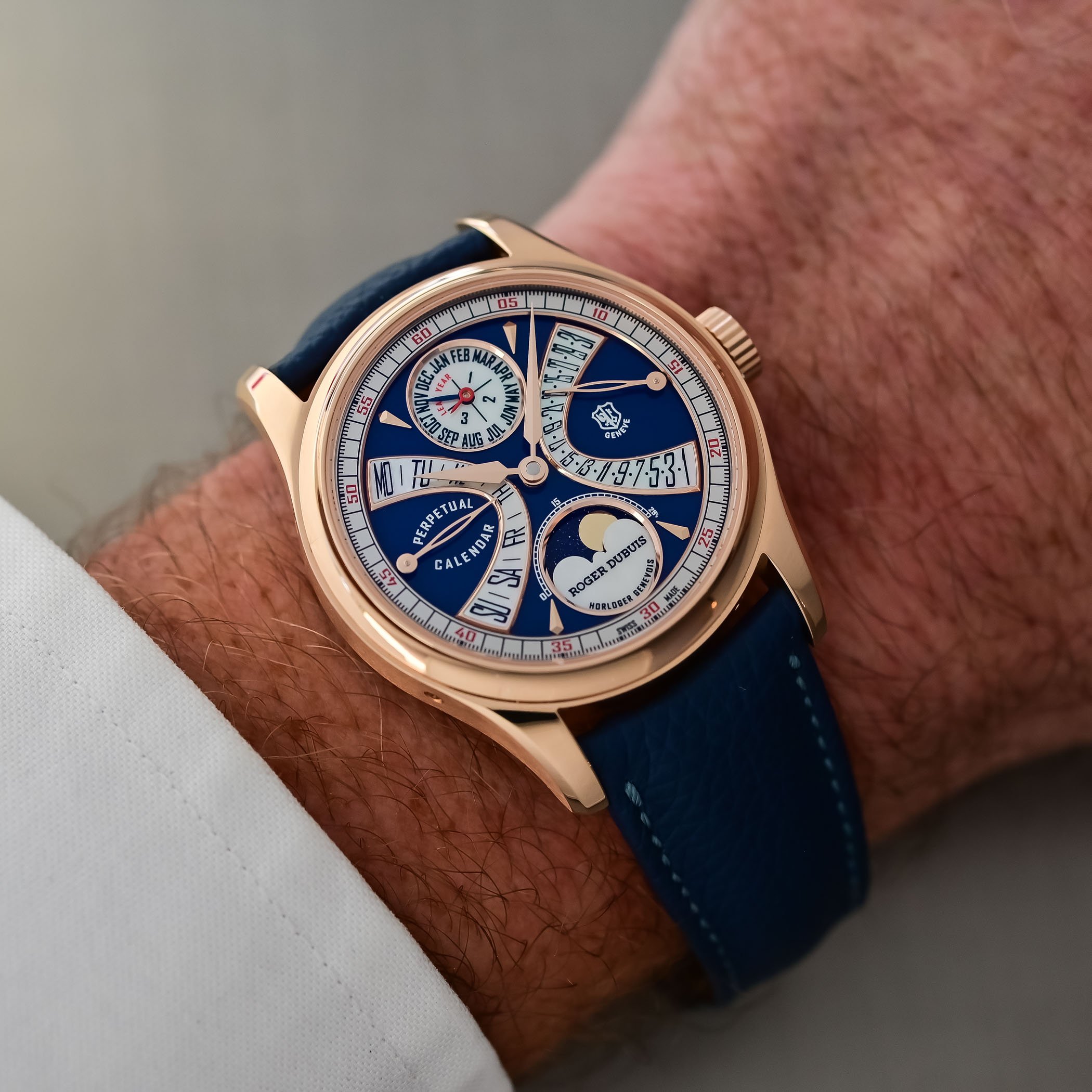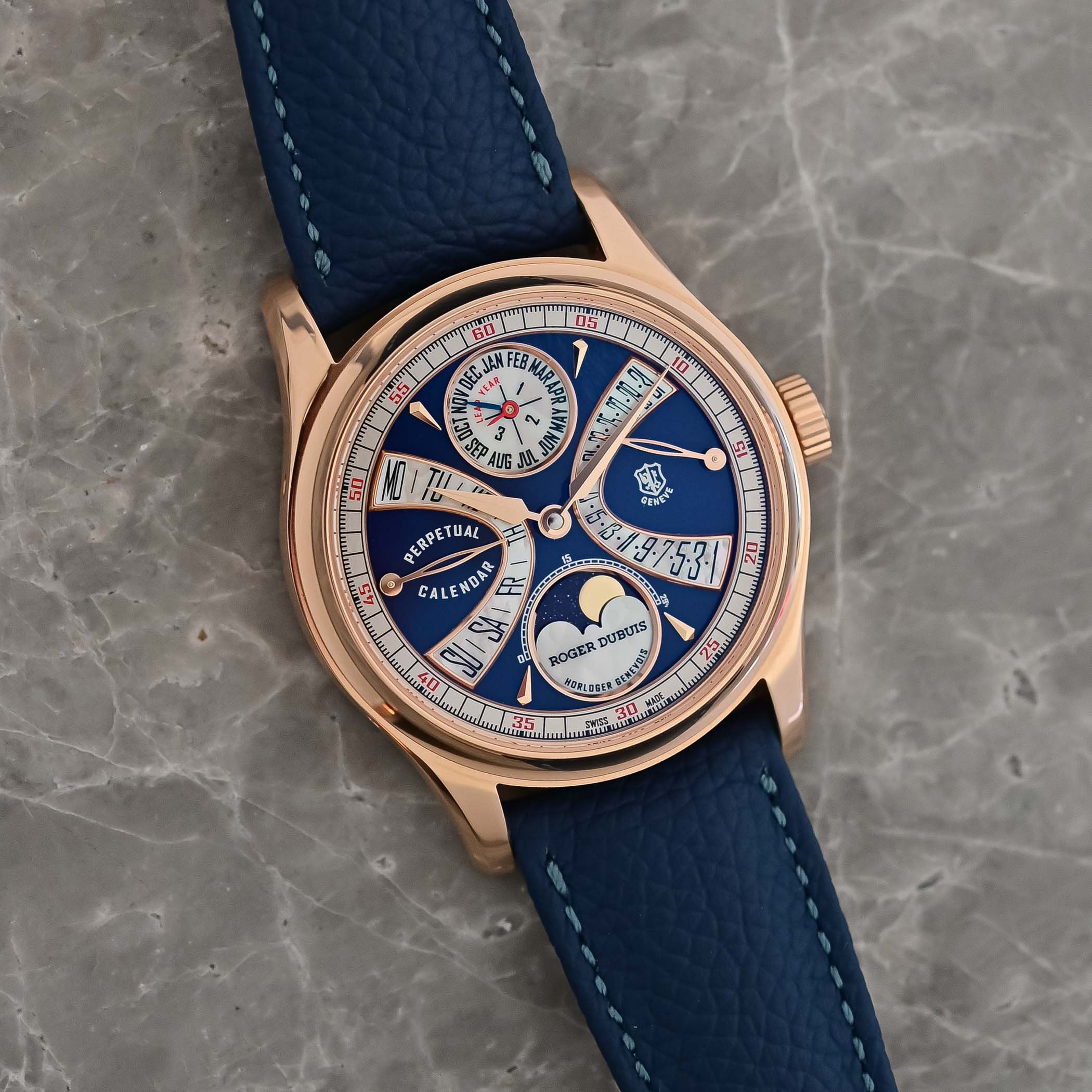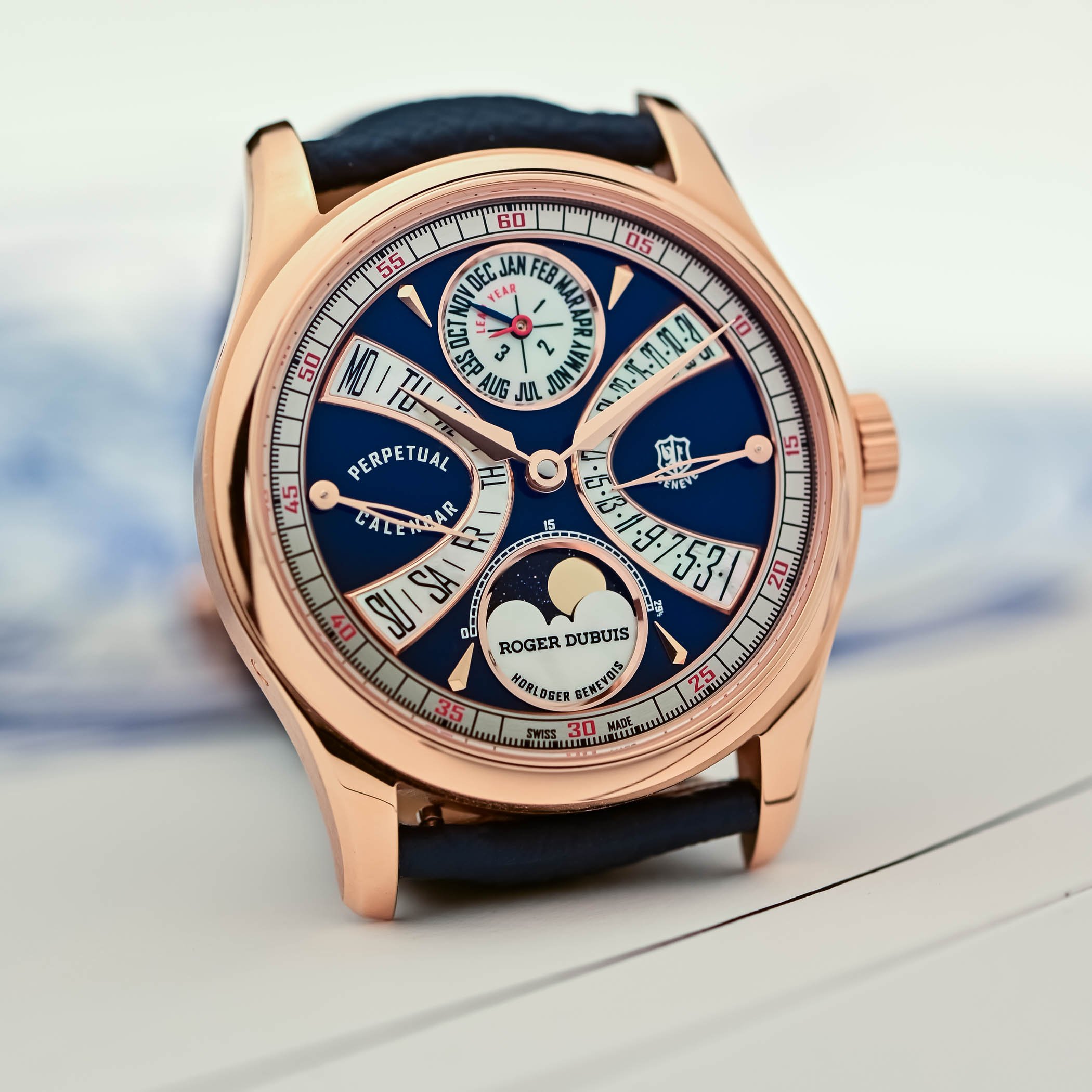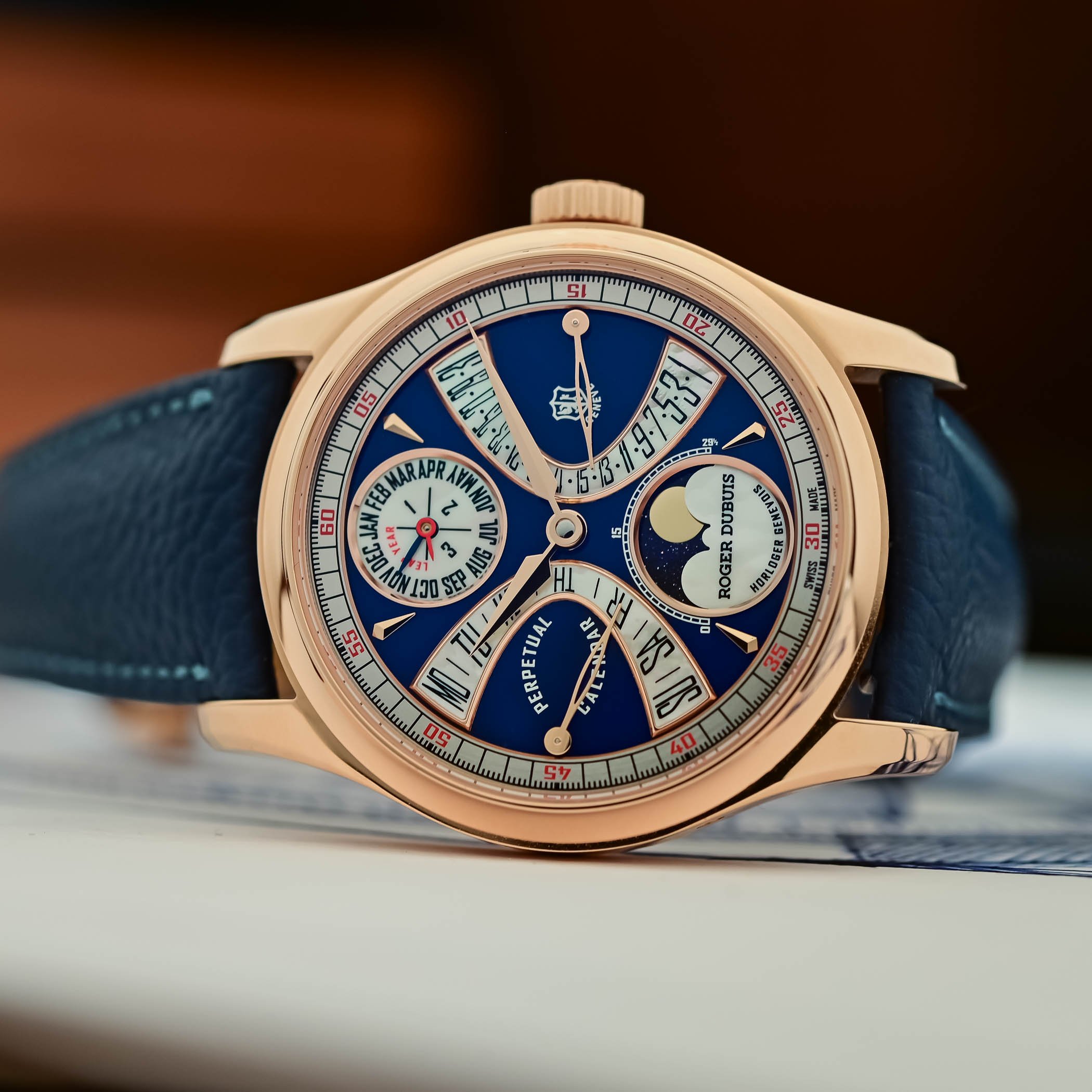 After about 14 years working at the renowned Genevan manufacture, Roger Dubuis left and, in 1980, created his own workshop to restore and repair watches and clocks for collectors, auction houses, and watch brands, extending his list of clients beyond just those of Patek Philippe. But that was just the beginning of the story. Dubuis wanted more and started working on the development of movements and modules, starting with his own take on a praised complication, the perpetual calendar, to be fitted atop a Lemania movement – not much different from what Patek Philippe was doing back then with the 2499 series of Perpetual Calendar Chronograph watches. However, Dubuis, together with a young Jean-Marc Wiederrecht (founder of Agenhor, now owned by MELB Group), developed a double retrograde perpetual calendar module, which would be fitted in 1989 in a Harry Winston watch – but more on that later.