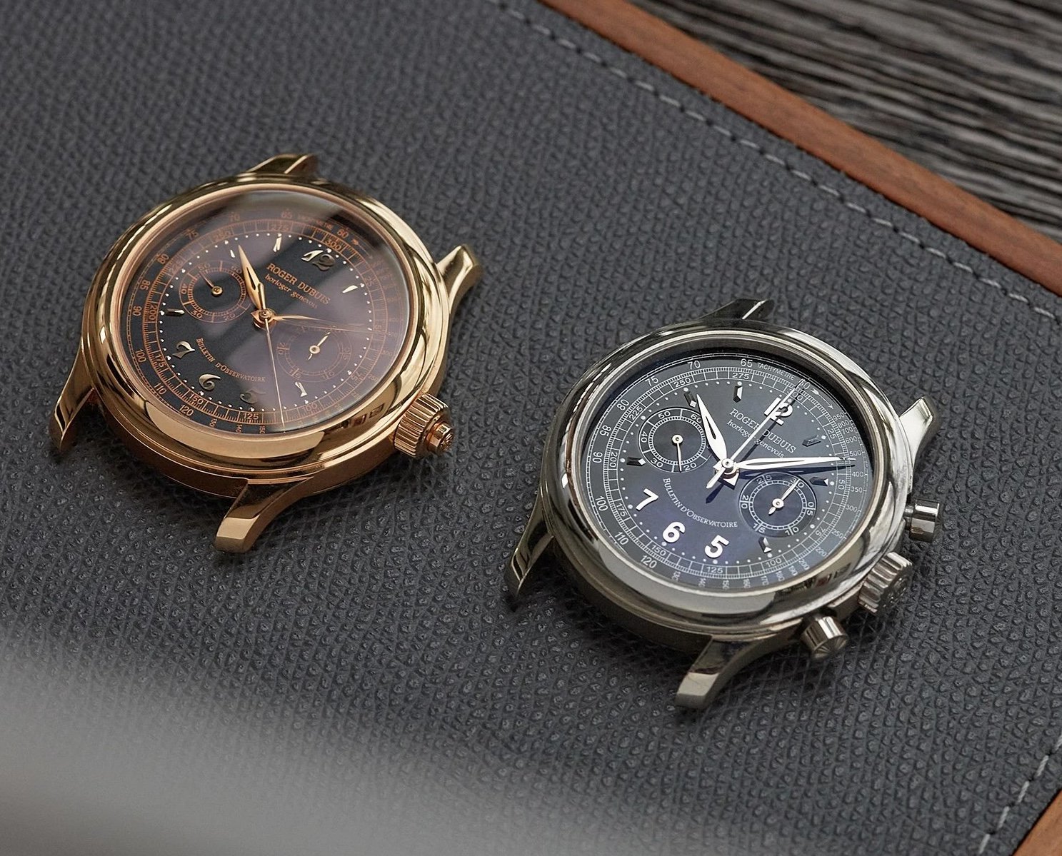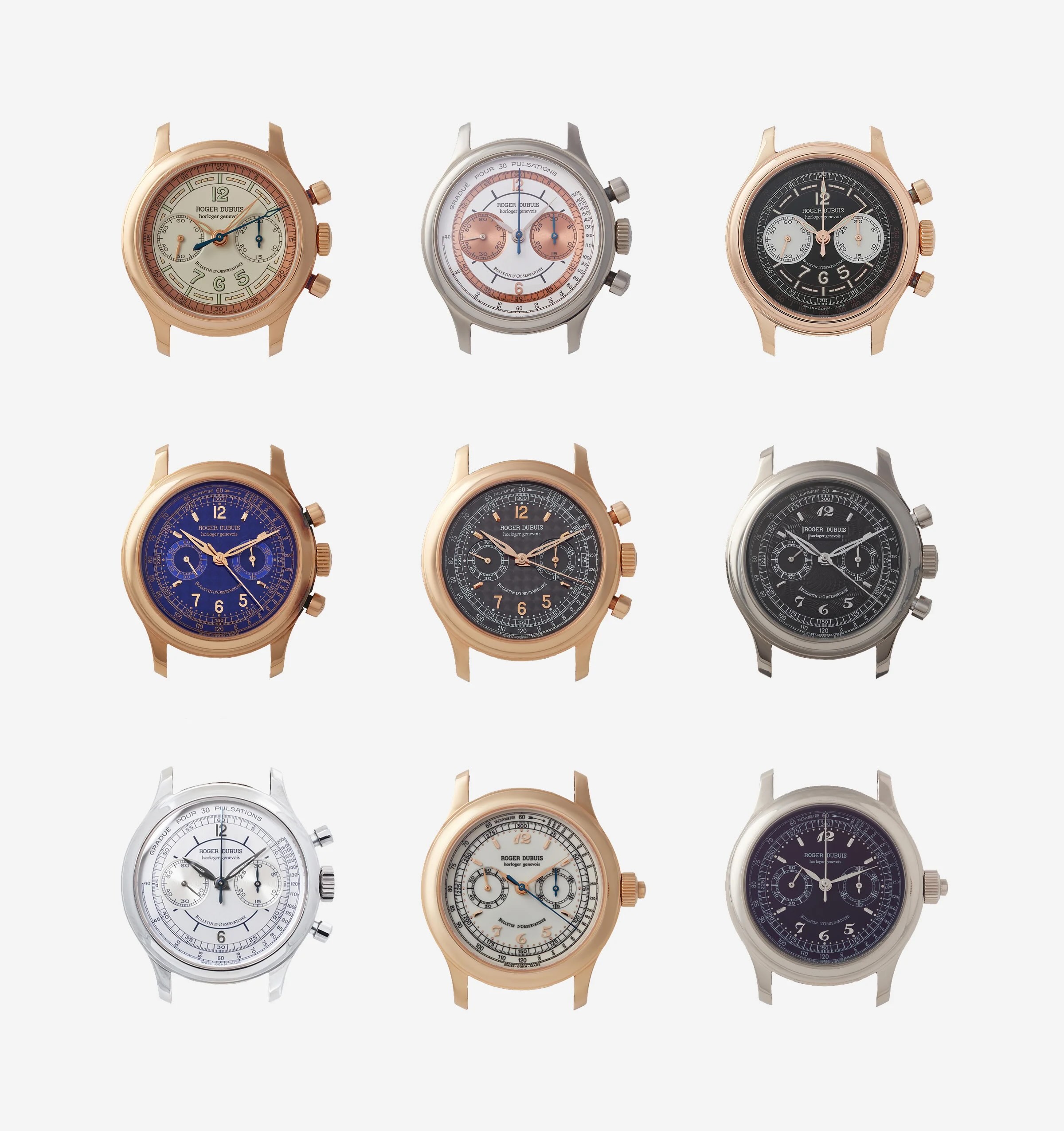 The early chronographs of Roger Dubuis were among the finest watches available at the time on the market, with a strong focus on decoration and accuracy, with every piece produced bearing the Geneva Seal and being certified by the Besançon Observatory. These inaugural watches, most likely delivered in 1996, and stamped “horloger genevois” on the dial, had the clear intention to rival equivalent offerings from Patek, and were targeted to the same collecting audience by proposing watches within the same spirit as the references 130 and 1463 Tasti Tondi hand-wound chronographs. Cases were either 34, 37 or 40mm, exclusively in precious metals, either in classic two-pusher or monopusher configurations. Sector dials, guilloché patterns, salmon colour or Breguet numerals, there’s been a multitude of configurations available, but all with the same overall spirit.