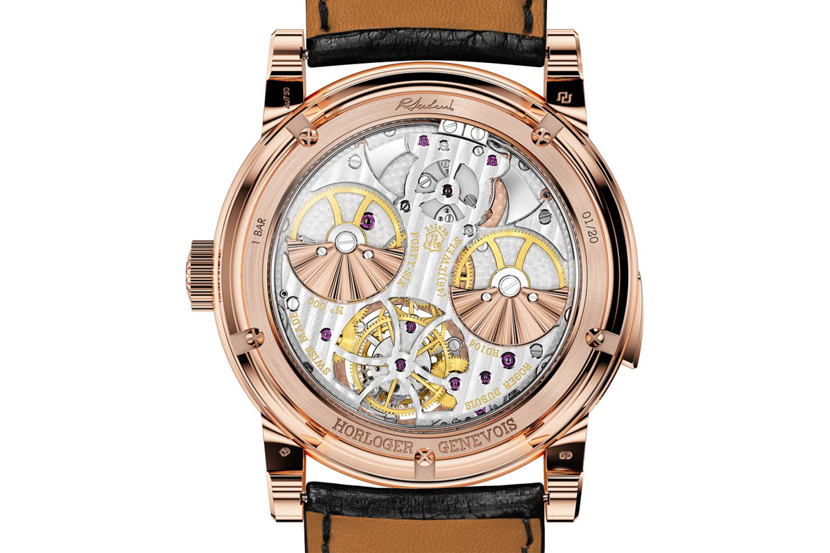 All the mechanical elements that you can see on the front (as well as the ones on the backside) are hand-finished, polished, grained, angled… well, they are coming with a great attention to details. The RD104 movement itself is made of 434 parts, ticks at 3Hz and boasts 60 hours of power reserve. Alongside the chiming feature, that is of course a pure horological pleasure (despite its uselessness in our era of modernity), the Roger Dubuis Hommage Minute Repeater Tourbillon Automatic has a very attractive winding mechanism. The movement relies on two micro-rotors, instead of a full-sized rotor or a single micro-rotor. What is the purpose? Well, it will for sure deliver more power to the barrels. But it is also a demonstration of the strength of Roger Dubuis’ watchmakers. It may not be essential, but so are the tourbillon and the minute repeater. Haute Horlogerie is not useful, essential or rational. It is however a source of dreams and a laboratory for advanced technologies. And this is what the Roger Dubuis Hommage Minute Repeater Tourbillon Automatic is.