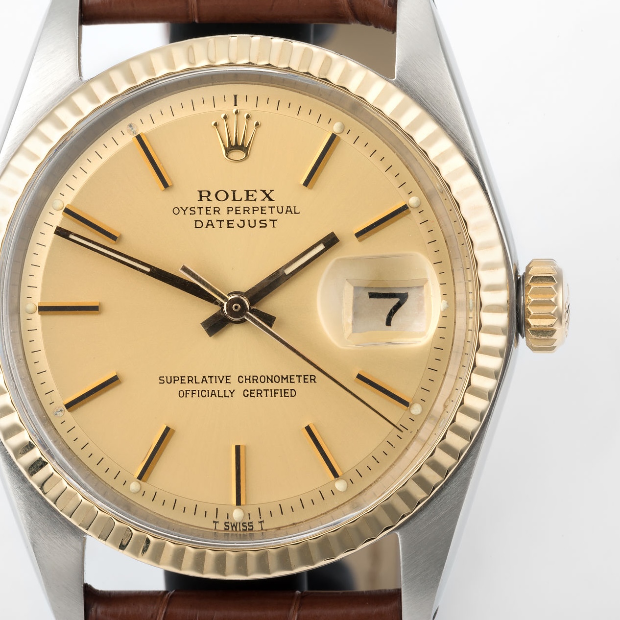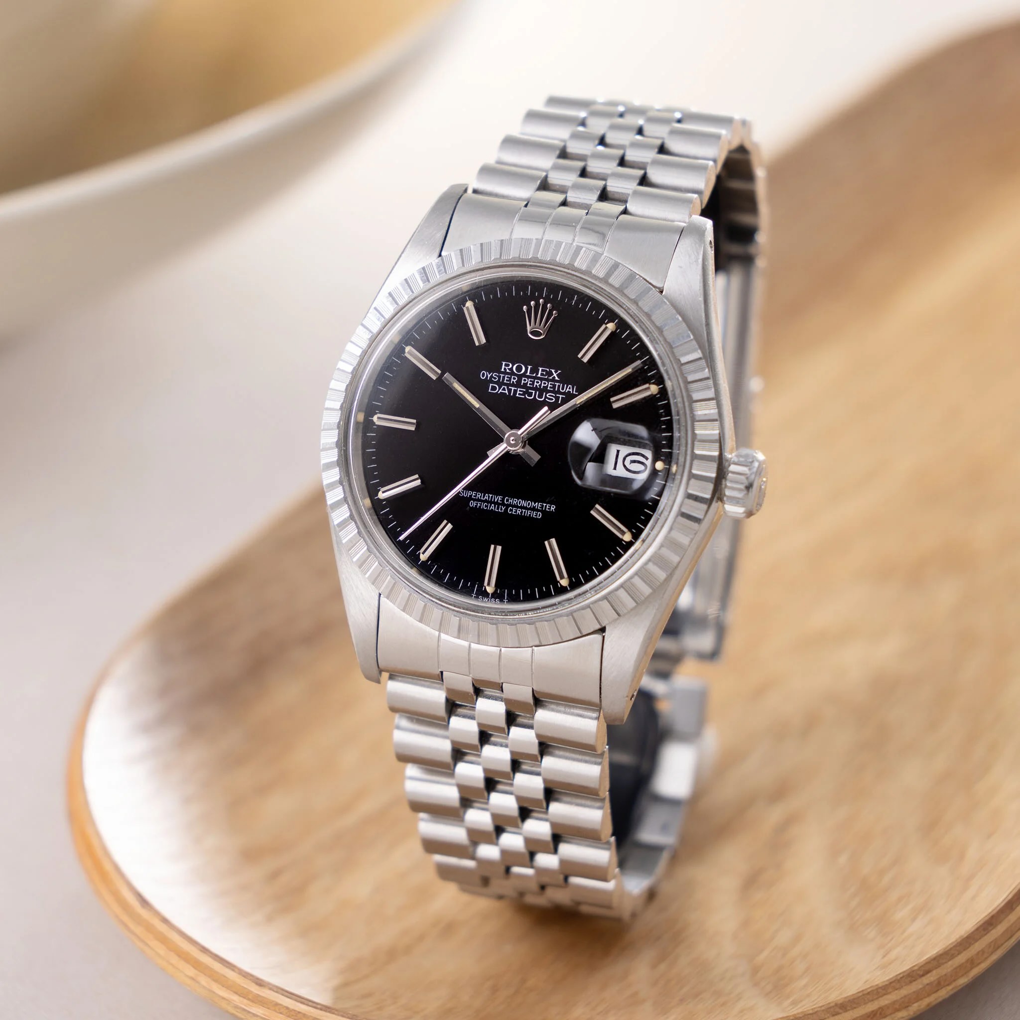 The big change with the first five-digit Datejust models was calibre 3035 that finally brought a quickset date function, so the date wheel could be easily set via the crown instead of rotating the central hands to eternity. Little changed aesthetically as this was a technical advancement and transitional model, and there was a bit of overlap with late 1601 models. Vintage elements like the acrylic crystal and drilled lugs remained with this reference, and it often carried a steel engine-turned bezel. However, the pie pan dials were replaced with flat, contemporary counterparts with this generation. Ref. 16013 was the classic Rolesor model with a fluted bezel. With this reference group(160xx), Rolex enthusiasts today can get a retro Datejust with a quickset date for a reasonable price.