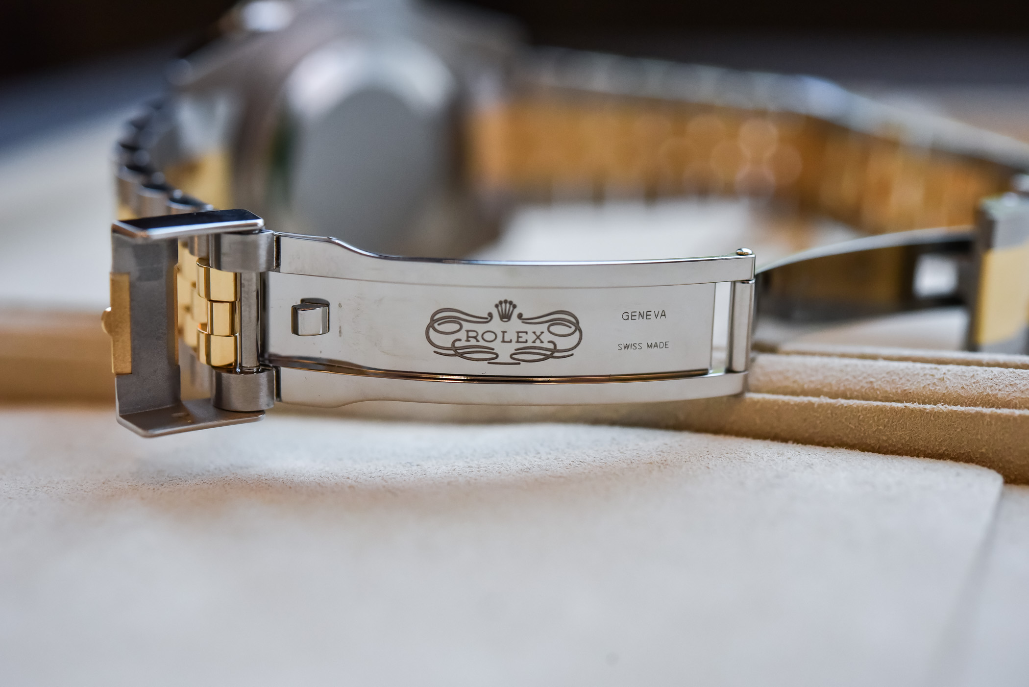 Importantly, this new GMT-Master II two-tone 126713GRNR, as well as the full yellow gold model, marks the first appearance of the Jubilee bracelet on precious metal GMT watches. It was only reserved for the steel Pepsi, Batgirl and Destro versions up until now. It means a 5-link, slightly vintage bracelet with polished 18k gold central links and brushed steel external links. Clasp; classic Oysterlock folding safety clasp with Easylink comfort extension link. Comfort; classic Jubilee, supple, soft and flexible. And the look is just as good as it gets (if you love Rolex and this style, of course).