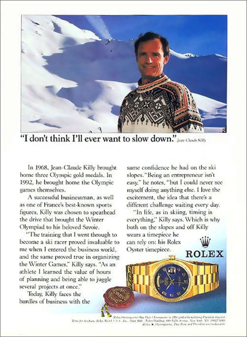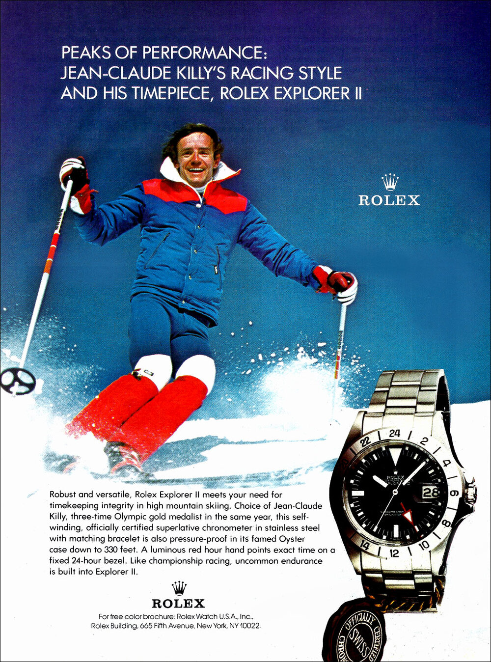 Strangely enough, while the watch gets its nickname from Mr Jean-Claude Killy, he featured in Rolex ads and promotions wearing a Day-Date and an Explorer II. There’s almost no photographic evidence of him ever wearing an Oyster Dato-Compax.