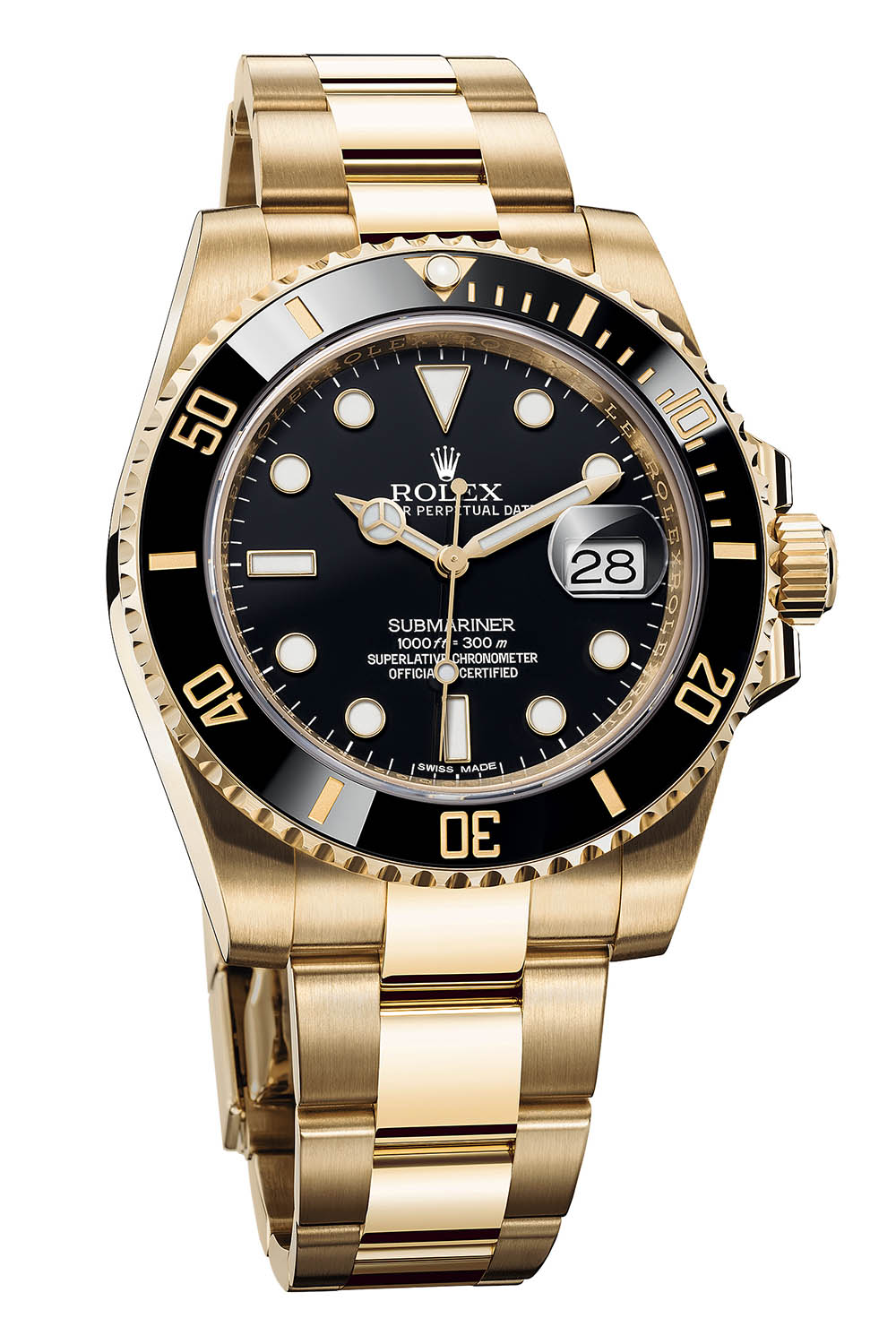 - Submariner Date 116618LN – Yellow gold, black dial, black bezel