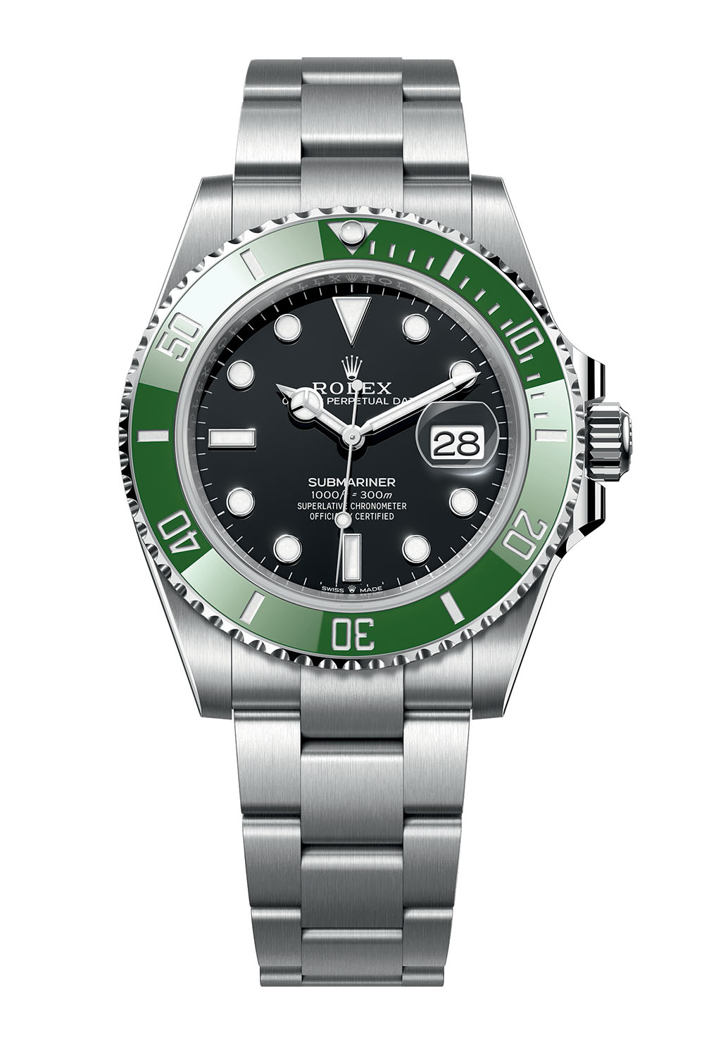 - Submariner Date 126610LV – steel, black dial, green bezel