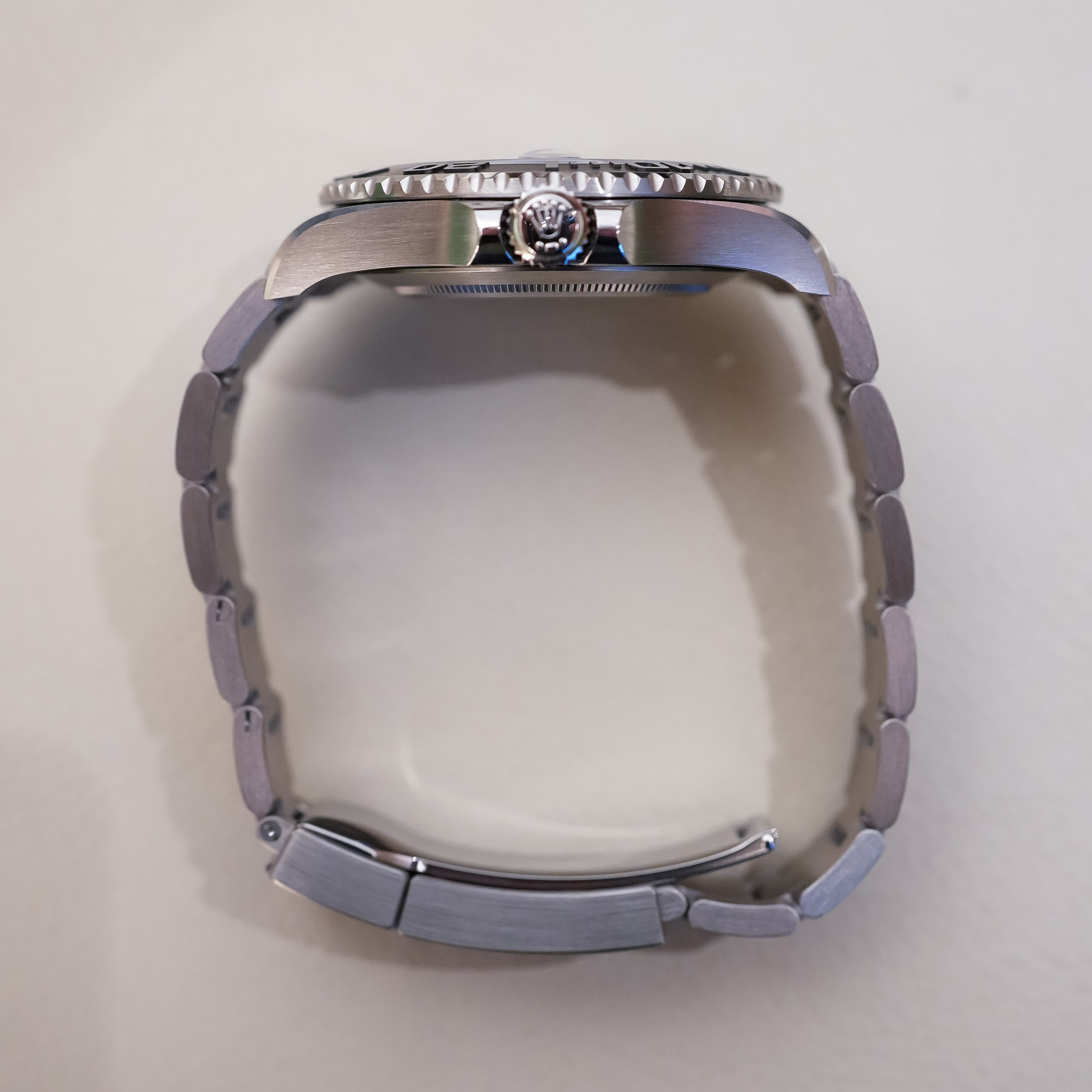 Yes, the watch looks like a Rolex, but it doesn’t feel like one on the wrist. It’s about 35% lighter than steel (around 100 grams), and everything I associated with how a Rolex should feel on the wrist simply vanished. I don’t want to sound too dramatic, but believe me when I say that it was a rather special experience at first. But the beauty is that you soon forget about this first impression and enjoy a watch that is surprisingly light. Despite its size, it is extremely comfortable and balanced. A watch that you’ll forget in about 30 seconds after you strapped it on the wrist. The initial feeling of a lack of robustness is, of course, just a misinterpretation of a pre-formatted brain and has nothing to do with the actual heft of the watch.