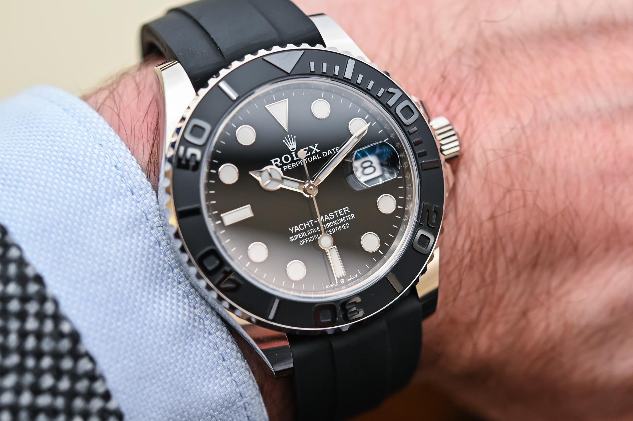 The Rolex Yacht-Master 42 reference 226659 has a retail price of EUR 25,700. Regarding availability, it is now for sale in stores. Demand appears reasonable and the watch doesn’t suffer the same shortage or premium as some other Rolex models (in steel, though).