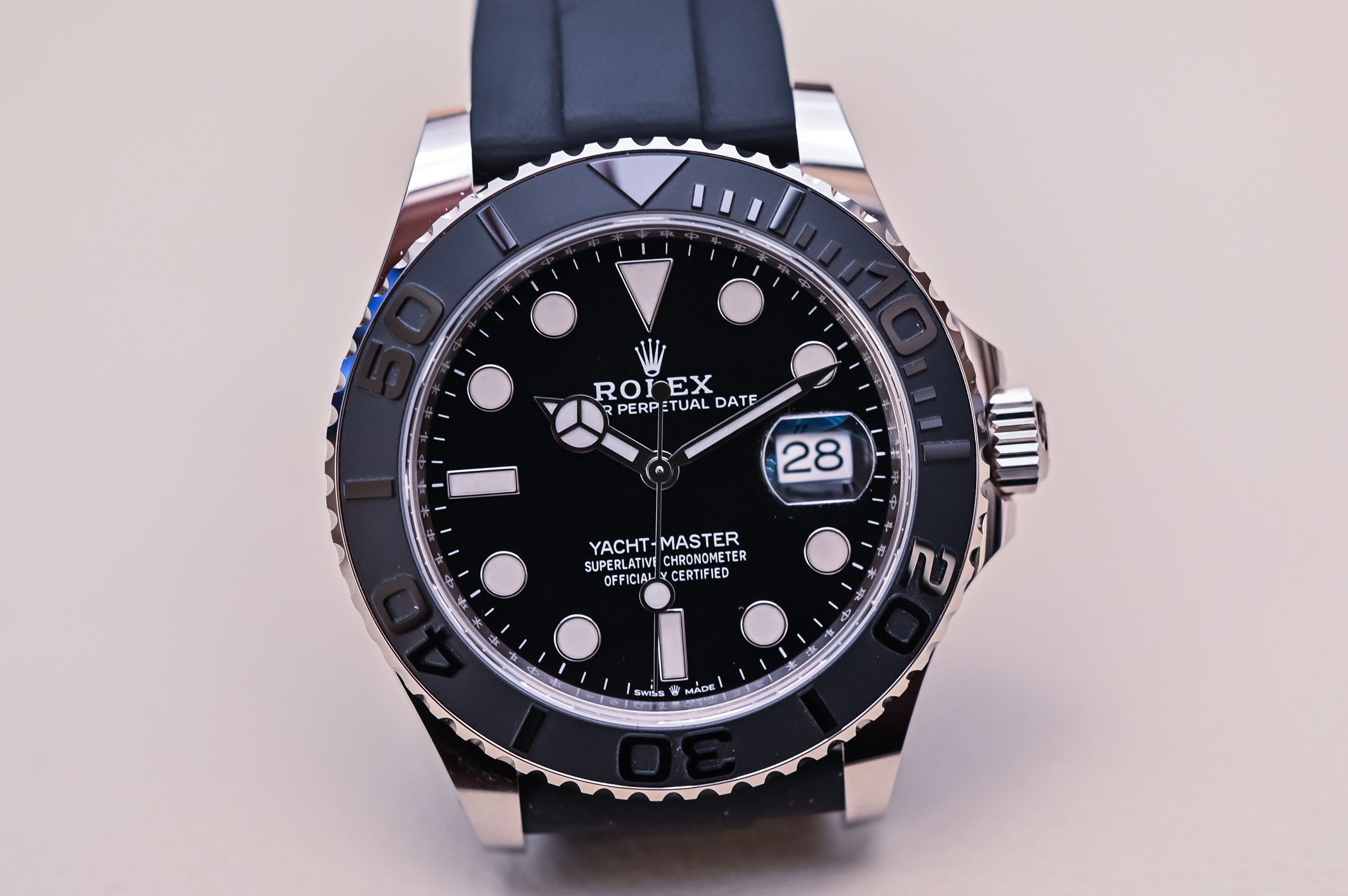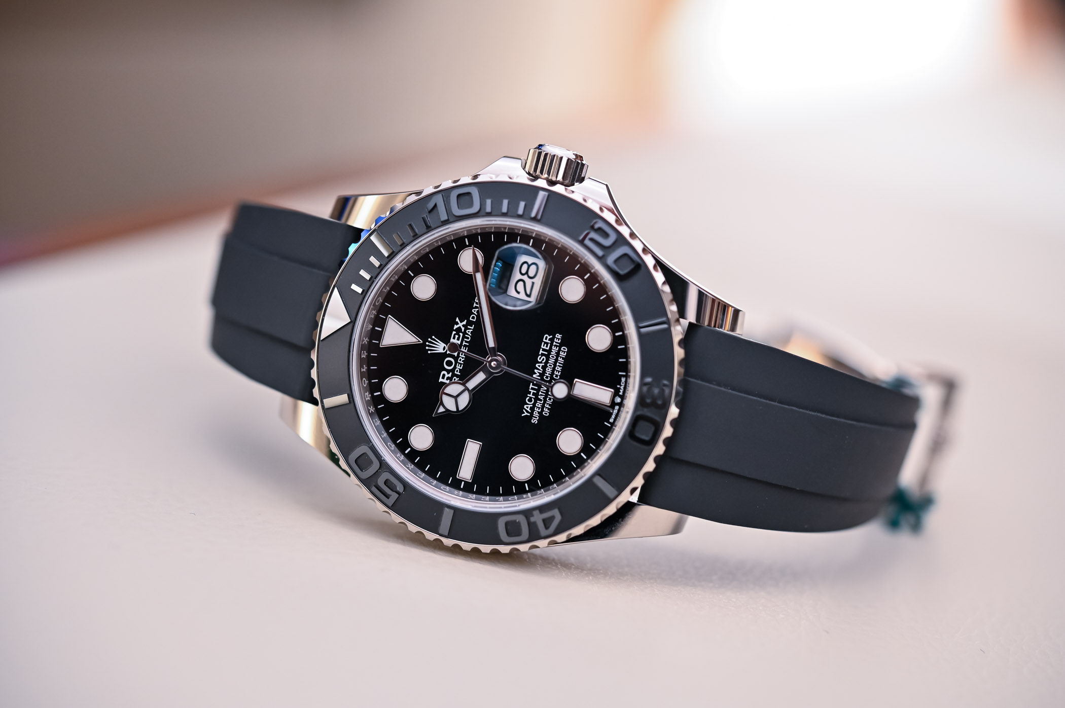 If a conservative bastion of watchmaking like Rolex proposes a 42mm white gold watch on a black rubber strap as the epitome of sporty elegance, well, you’ll have to admit that times have changed. Rolex seems to have tapped into the zeitgeist for larger luxury sports watches doubling up as watches that can be worn just about everywhere with just about anything. Released during Baselworld 2019, the Yacht-Master was revisited in a larger 42mm case with sleek black tones and the new-generation calibre 3235. It also marks the first time the Yacht-Master has appeared in white gold, so let’s take a closer look at Rolex’s “watch of the open seas”, the Yacht-Master 42 White Gold ref. 226659.