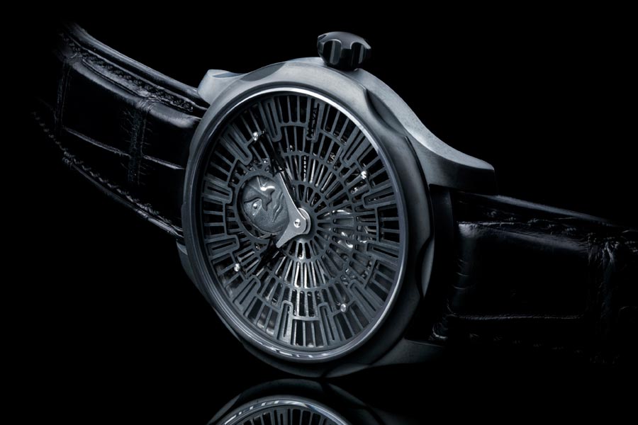 A few months after the Black Moon ceremony, Finnish photographer Vesa Kippola, shot some excellent photos of this dark beauty. The 44mm wide and 9.6mm tick case is entirely made in Finnland and so is the beautiful skelletonised multi-layer dial. Even the complete moonphase complication is designed and produced in Finnland.