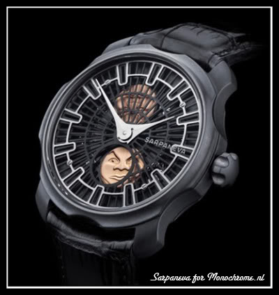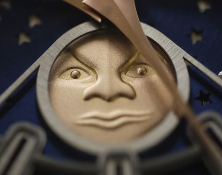 There’s been said a lot about the face of Sarpaneva’s moon. Some call it angry, some sad, some will say it looks arrogant or aristocratic. Or maybe it’s just sceptical. One thing is for sure, it’s the most intruiging moonphase ever made. It will keep you looking at it and wondering what’s the best description of it’s face. And if the moonphase at the dialside isn’t enough you can always take a look at the rotor to get a good look of the movement and another angry, sad, arrogant, sceptical or aristocratic moonphase.