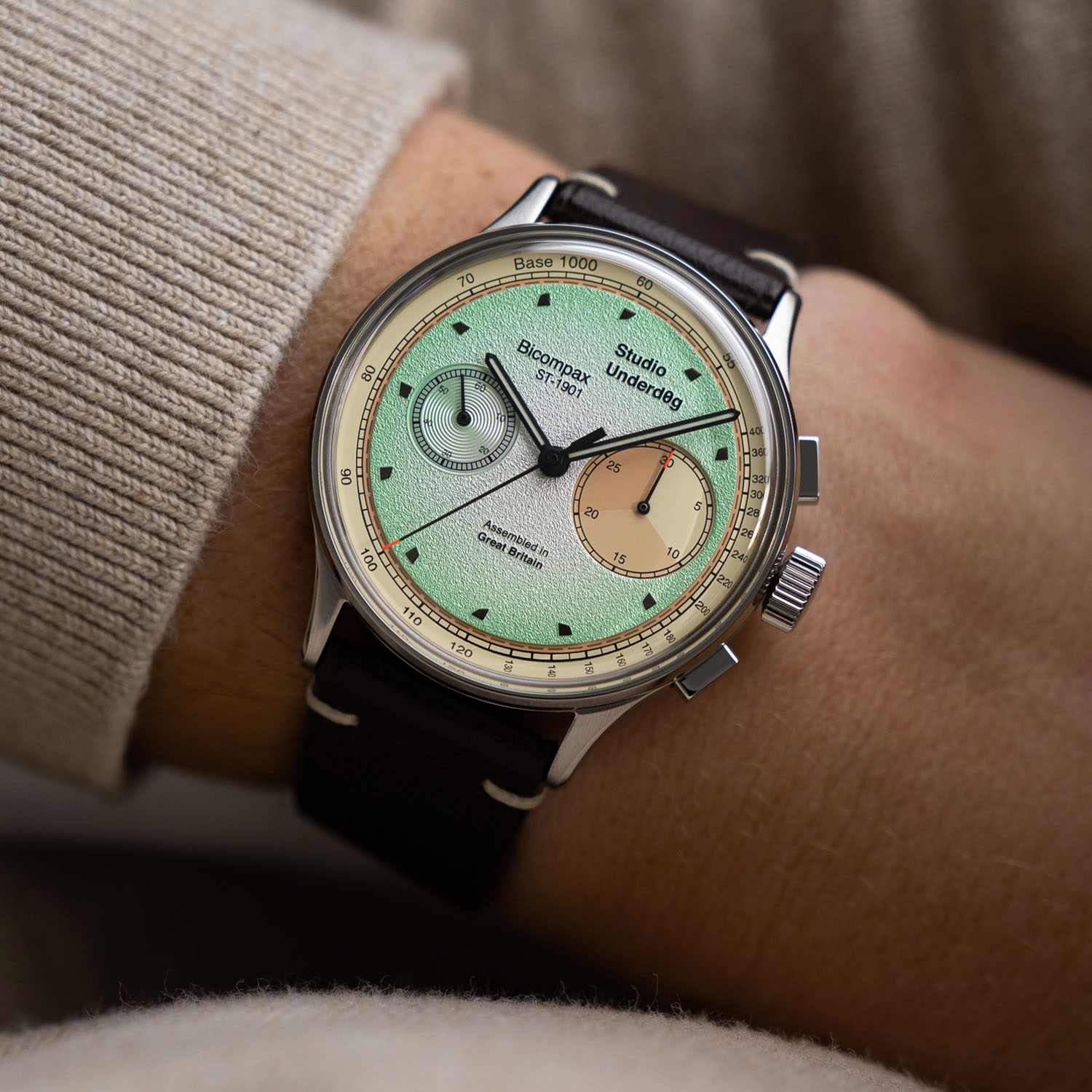 So what’s the deal with the movement, which, until now, has been widely known as the base of many accessible chronographs…? Seagull, a giant Chinese movement maker, published in April 2024 an o?cial notice that indicates that, for the future, all variants of the ST-19 chronograph calibre will have a MoQ (minimum order quantity) of 10,000 pieces. A gigantic amount, which most micro-brands won’t be able to fulfil. As such, many young or accessible watch brands are saying goodbye to the ST-19 calibre, and will have to find an alternative solution. But not Studio Underd0g, the young brand that you might have discovered through their collab with H. Moser & Cie.