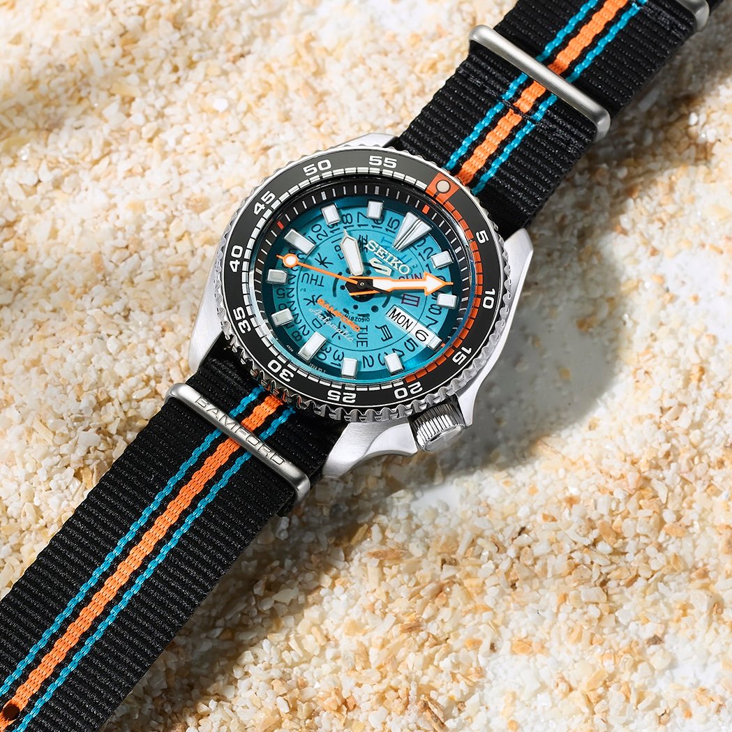 While all of us are now pretty familiar with the Seiko 5 Sports collection, and in particular the SKX series (an accessible aquatic-like watch inspired by the cult SKX007 of the past), there are also dozens of cool limited editions and bold collaboration models based on this platform. The latest in line, which will once again expand the collection, is made with London’s luxury custom watch brand Bamford. Based on the idea of a journey to “paradise”, a world of freedom and refreshment away from the hustle and bustle of everyday life, and even featured in a dedicated comic, the Seiko 5 Sports Bamford Limited Edition SRPL95 is a bold and fun new watch.