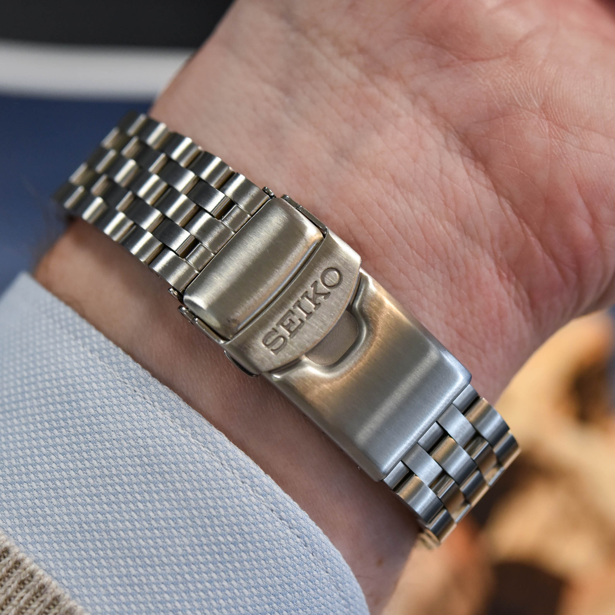 A word on the GMT complication… Seiko uses a so-called office or caller function and not a traveller or flyer type. While I personally prefer a flyer-like function, the use of a caller one here is understandable, considering the price range. As a reminder, this office-caller GMT function allows you to independently set the 24-hour hand with the crown in one-hour increments, practical in the case of an exploration watch, less if you’re travelling and crossing borders. The function is powered by the calibre 4R34, an entry-level in-house automatic movement with a 3Hz frequency, a 41h power reserve and a stop-seconds mechanism.