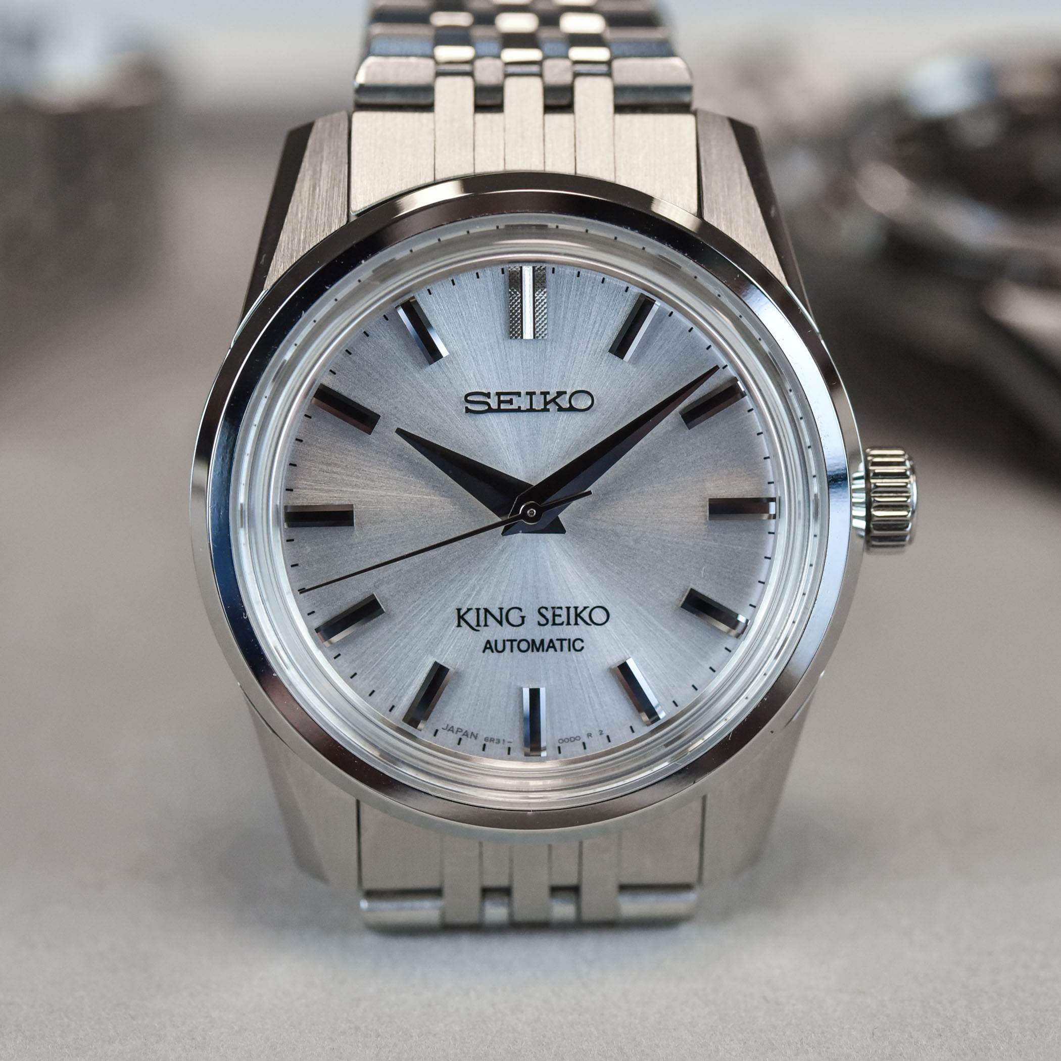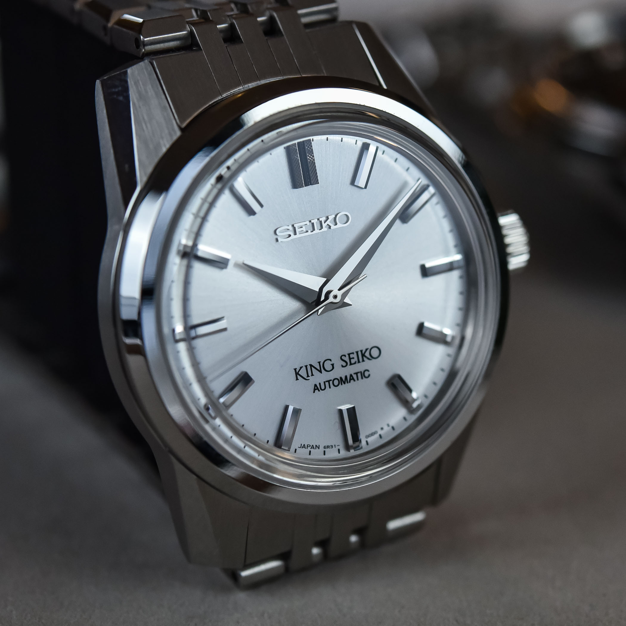 Agreed as for many of the comments here. I have a Seiko Presage (SARX055) with the 6R35 movement, and it was about $900 (US). Fundamentally, it’s not very different than this King Seiko model. I have been considering a Grand Seiko, spring drive model lately. A King Seiko with a high beat movement or an undecorated spring drive movement as Seiko has used in the past, might be a good upgrade for this watch. Add a screw down crown with a price point between a high end Presage and a Grand Seiko and I think you have a winner on your hands, er, wrist. I’ll wait for that. The burgundy dial is lovely.