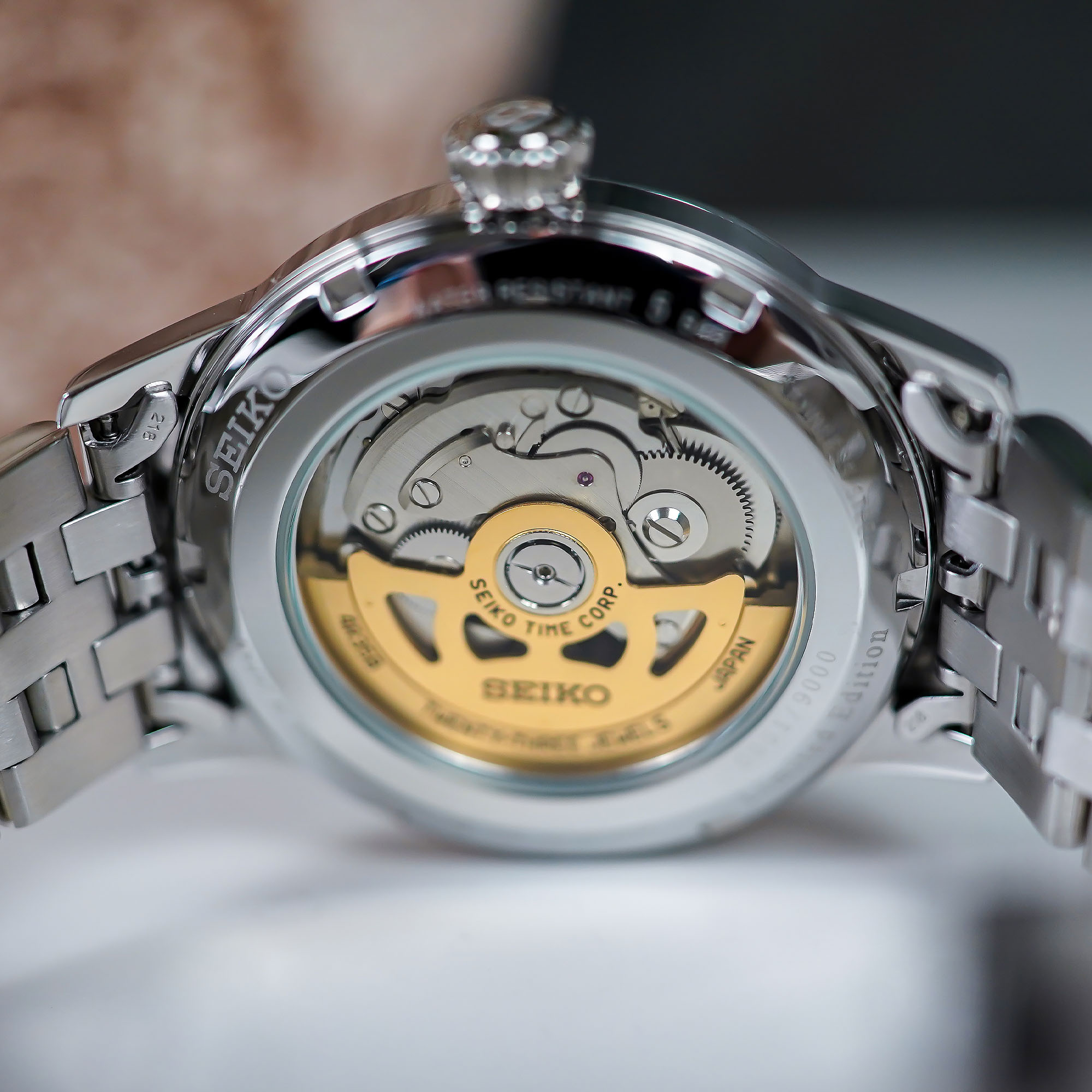 Quick facts SRPK93: 40.5mm x 11.8mm steel case – Hardlex box-shaped crystal, see-through back – 50m water-resistant – gradient grey textured dial, gold-coloured markers and hands – automatic calibre 4R35, in-house, 41h power reserve, 3hz – steel bracelet with folding clasp – ref. SRPK93J1 – limited edition of 9,000 pieces – EUR 560