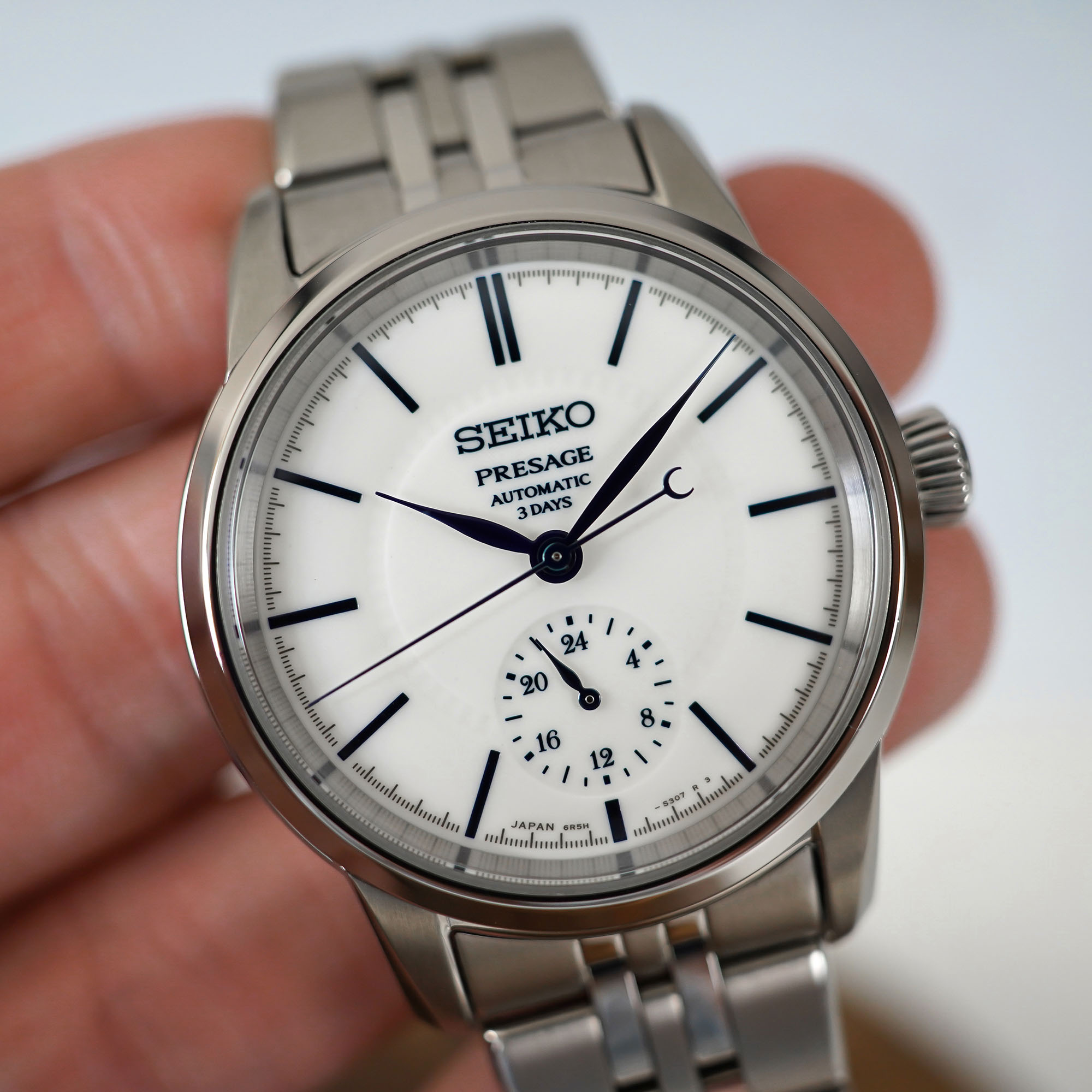 The rest of the watch remains in line with the Presage models of last year, with a new, slightly more modern case design than what the collection offered in the past. Measuring 40.6mm diameter and 12.5mm thickness, the Presage Arita Porcelain SPB445 comes in a stainless steel case with super-hard coating, topped by a sapphire crystal. It is secured to the wrist by a 5-link steel bracelet with folding clasp.