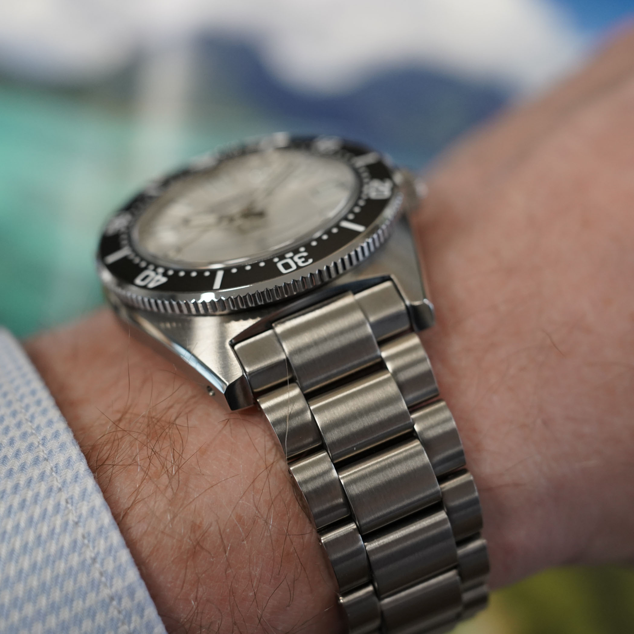 On most levels, we’re looking here at a variation around the existing standard collection watches, only with a new dial (texture and colour), a slightly different bezel and an upgraded clasp (more on that at the end). In short, this watch retains all the upgrades that we saw last year when Seiko revamped the Prospex 1965 Heritage Diver – and knowing how good these watches are, I have no complaints whatsoever.