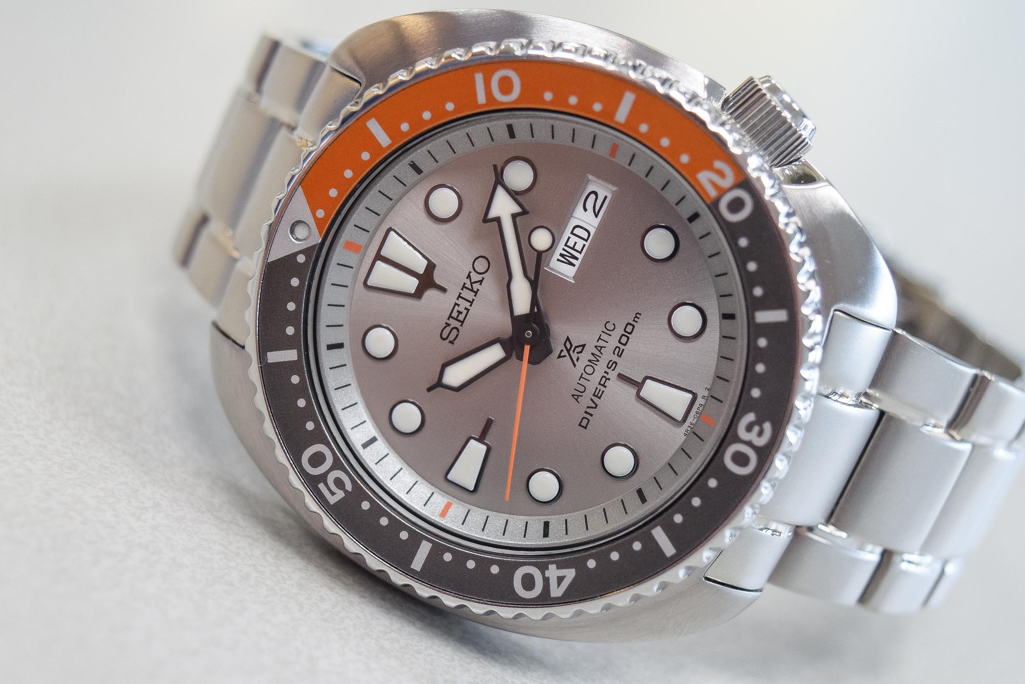 The beauty about the Seiko Prospex Turtle and Samurai ranges is that they are proper beater watches. You can throw them around, wear them all year, go scuba and desk-diving with them, take them fishing, for a hike in the desert, or go mountain climbing with them; they will keep doing what they have to do! And these new “Dawn Grey” follow that same path.