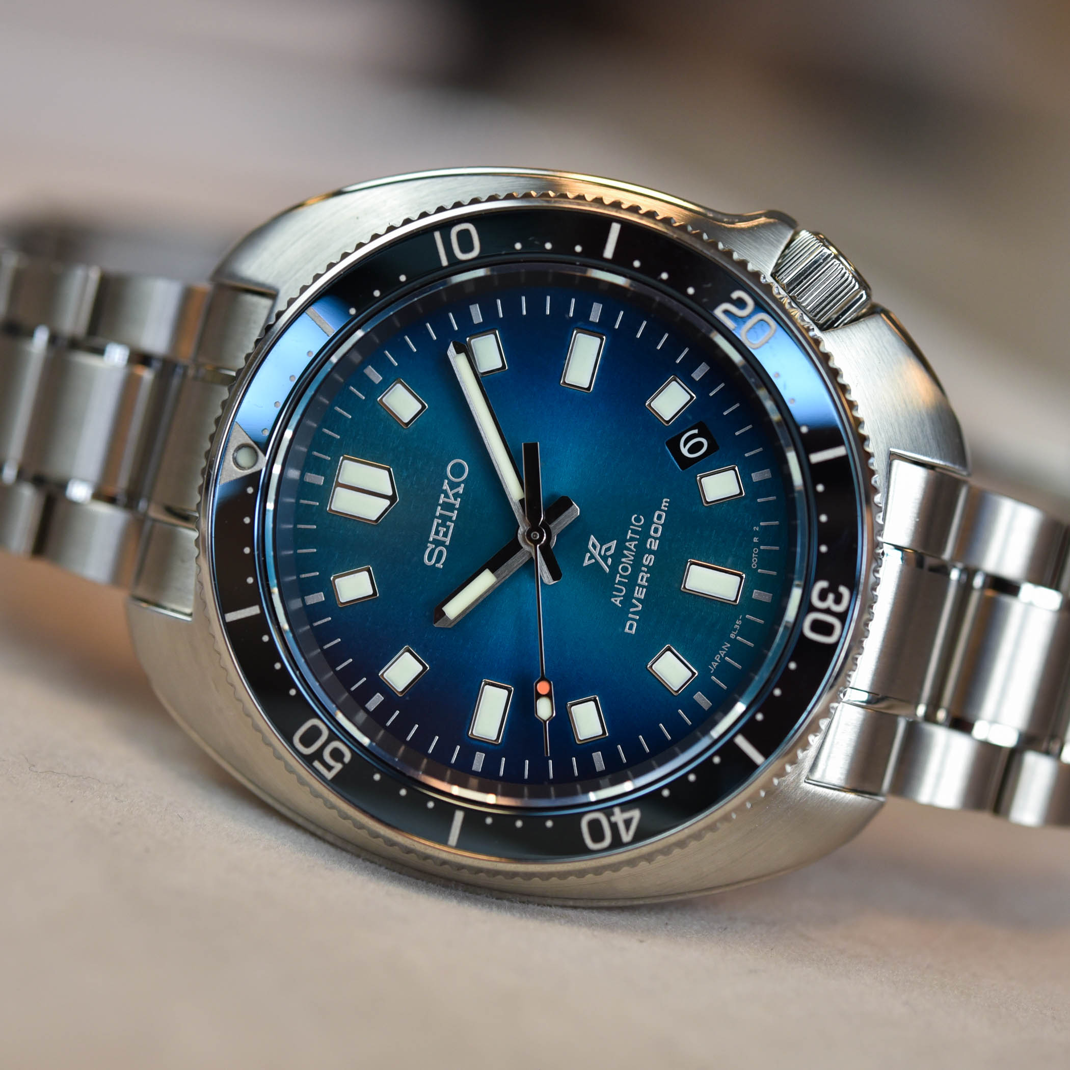 Seiko high-end Turtle diver in a subtle, blue limited edition.