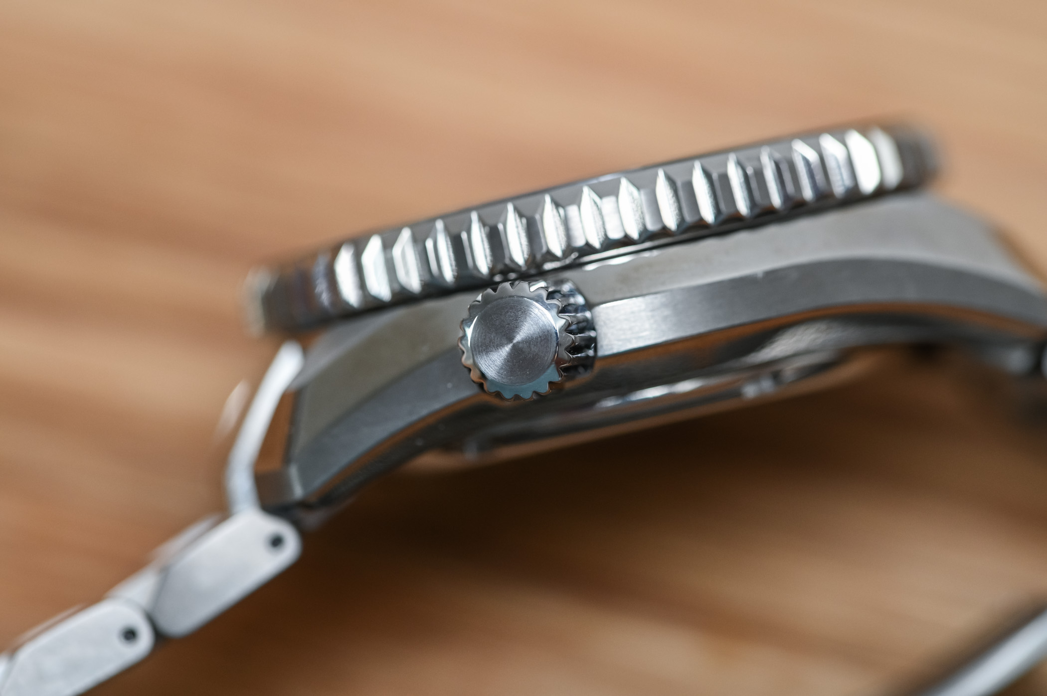 With its 14.7mm thickness, the bidirectional bezel and its sapphire insert sit high on top of the watch. Yet, the watch is very comfortable, relatively light (146 grams) and sits well on most wrists. It is a watch with great presence but it feels more compact than the specifications suggest. The overall execution is precise and feels highly durable, with all the parts carefully adjusted and with a firm action of the elements (bezel and crown).