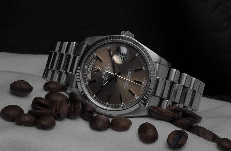 On these new dials, the linen is a deep, crisply milled relief that plays with light and gives the minimalist layout welcome topography. The colours are restrained: Slate Blue, a cool grey-blue that shifts with ambient light, and Tobacco Green, a warm olive-brown with subtle green undertones. Twelve polished, tiny hand-applied drop-shaped hour markers are catching reflections, the domed sword hands are mirror-finished, and the handset is deliberately seconds-free: hours and minutes only, to slow the watch down and keep the composition calm.