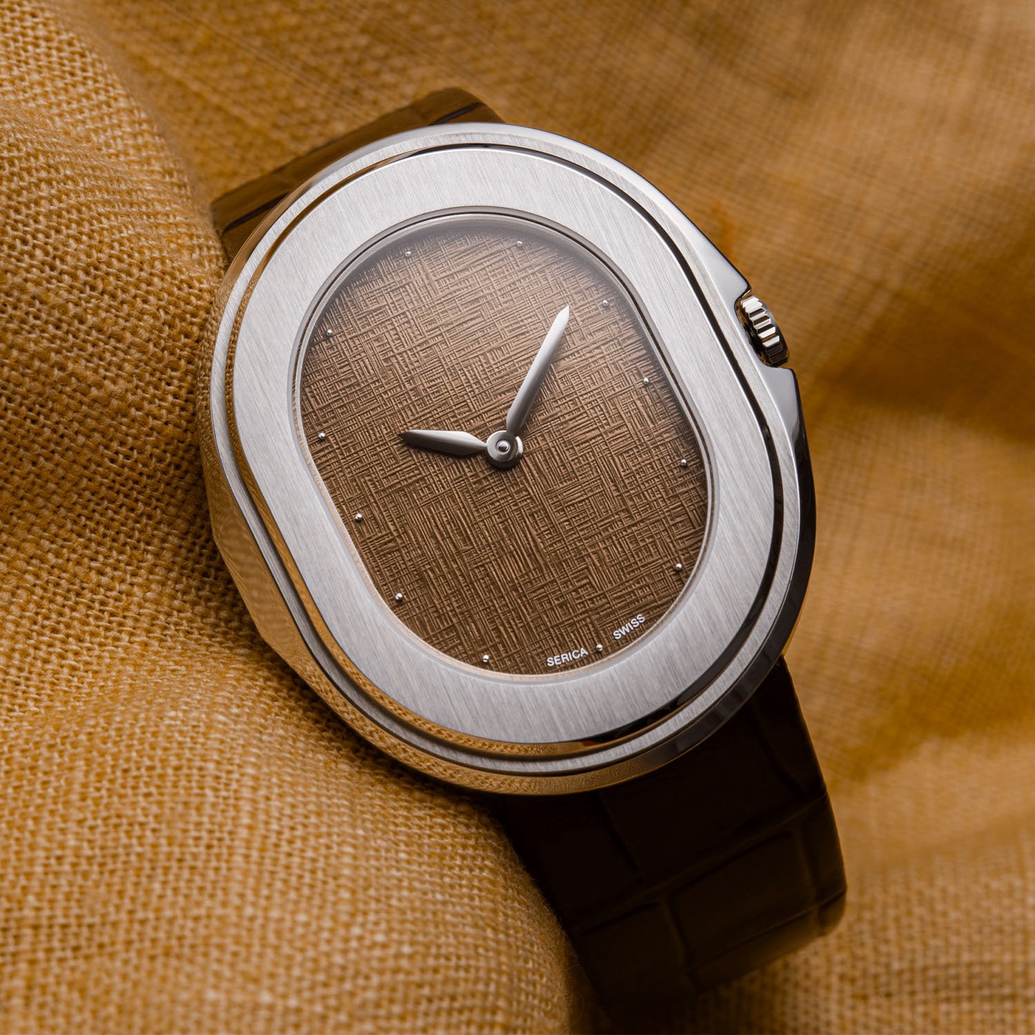Young French brand Serica has built a loyal following by incorporating vintage cues into clean, modern tool watches and addressing the details that many brands often ignore. After field-ready divers and GMTs put the Paris-based maker on the map, the Serica Parade Ref. 1174 shifted the conversation to the dress watch category – without abandoning practicality. The stadium case (a soft rectangle with straight flanks and rounded ends), combined with a time-only display and 100m water resistance, delivered a daily, do-anything dress watch. The line now expands with two permanent references featuring linen dials, a classic cross-weave texture familiar to collectors from mid-century Datejusts and select Omega models. Both preserve the Parade’s quiet elegance, while the texture adds character.