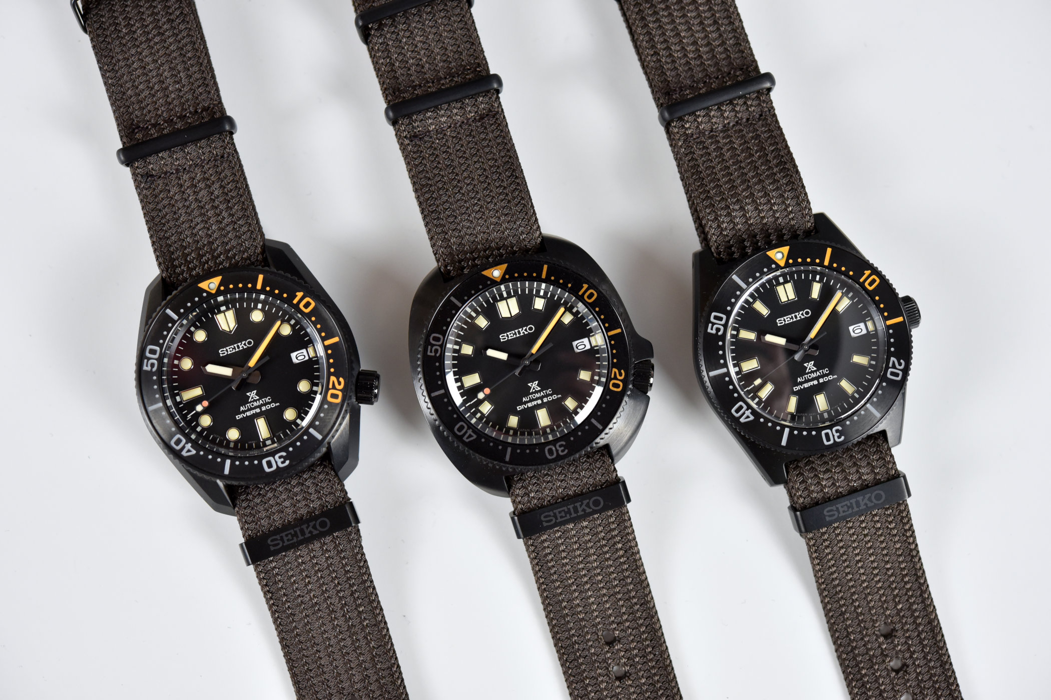 Quick Facts – 40.5mm x 13.2mm – stainless steel case with black coating, brushed and polished – unidirectional rotating bezel with two-tone grey and orange 60min scale – screw-down crown at 3 o’clock – sapphire crystal – 200m water-resistance – black dial with beige LumiBrite markers – black hands with beige and orange LumiBrite inserts – Seiko calibre 6R35 automatic – 24 jewels – 21,600vph – 70h power reserve – brown textile strap with rubber strap alternative – limited to 5,500 pieces – EUR 1,250