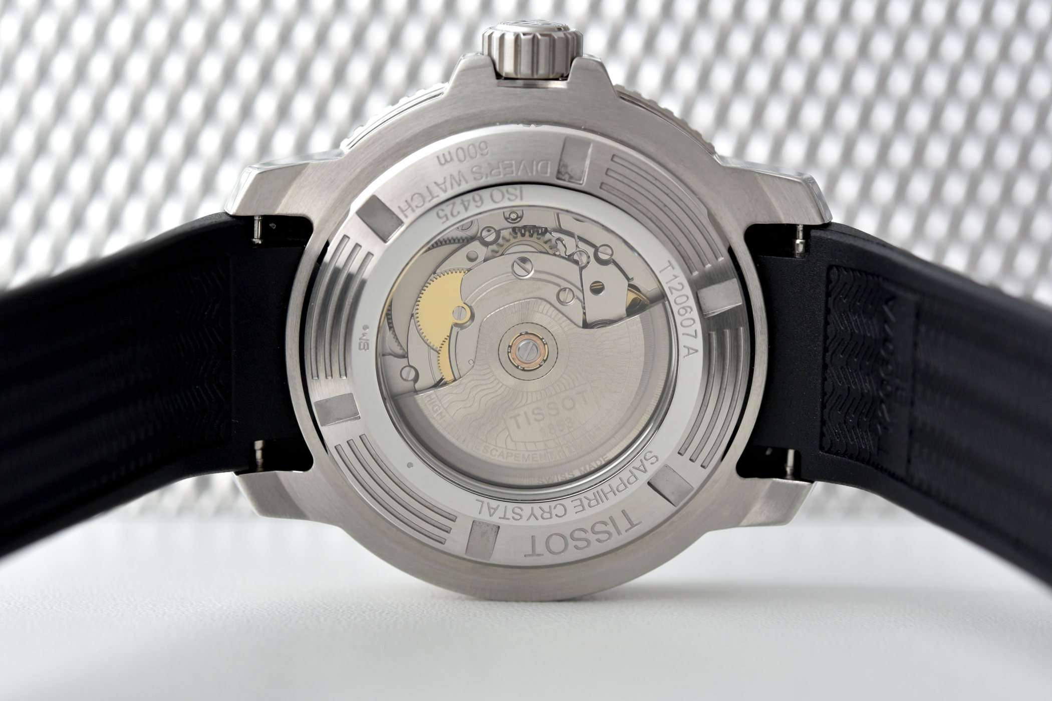 Quick Facts – 46mm x 16.25mm – stainless steel case, optional with black PVD coating – unidirectional rotating bezel with ceramic insert – domed sapphire crystal – sapphire crystal caseback – helium-escape valve – screw-down crown – ISO 6425 compliant – 600m water-resistant – gradient black or blue dial with wave-like pattern – applied indices and hands with Super-LumiNova – Powermatic 80 Calibre – automatic winding – 23 jewels – 21,600vph – 80h power reserve – non-magnetic Nivachron balance-spring – black rubber strap or bi-material black rubber and blue textile strap – EUR 995 (steel) or EUR 1,095 (black PVD-coated steel)