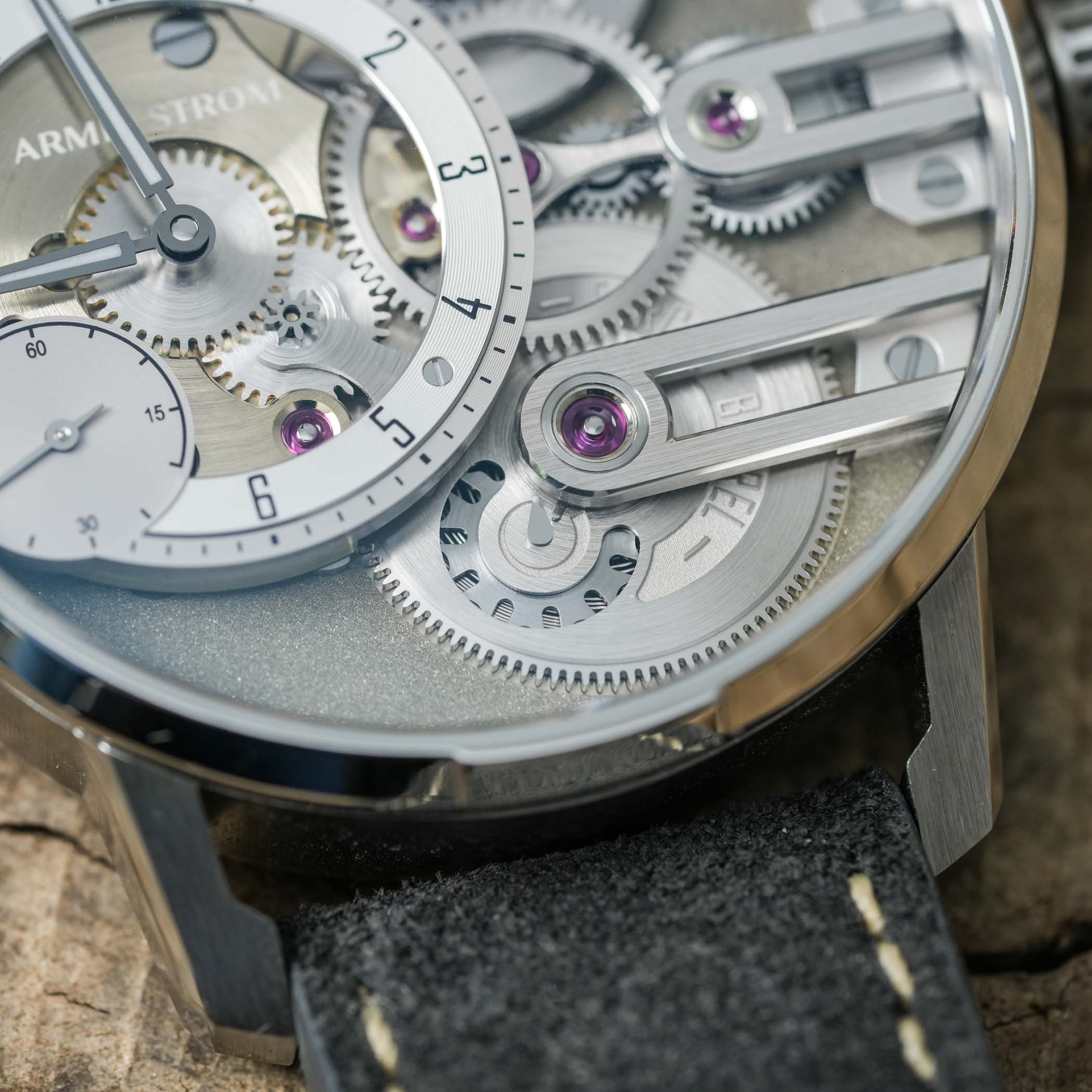 When pre-orders are closed, Armin Strom’s watchmakers will start working on our MdS3 Maillechort, which is worn on a grey Alcantara-like calfskin leather strap with an Armin Strom signed steel pin buckle. Deliveries are expected to start and be completed in Q4 of 2023.