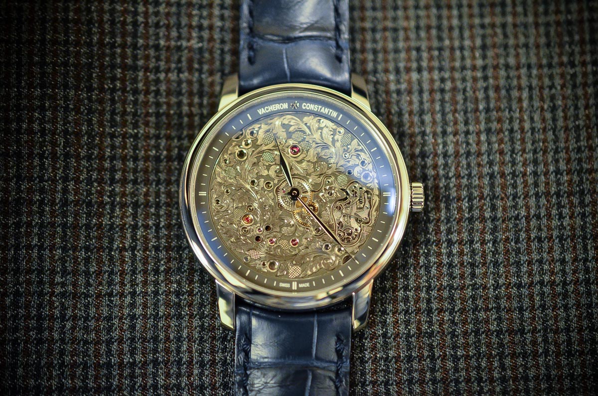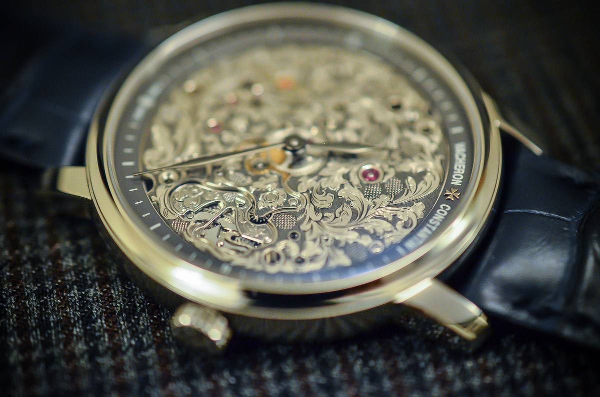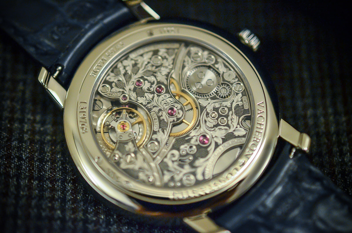 The complexity of the engraving lies in the fact that all the functional parts of the movement may not be affected by the removed material. A simple solution would be to thicken the necessary parts to allow the engraver to decorate the movement without the risk of interfering with the rigidity and accuracy of the movement. Vacheron however, opted not to do this so each and every part of these movements is made to the exact same specifications as non-engraved versions. As a result, the depth of the engraving often measures less than a millimetre.