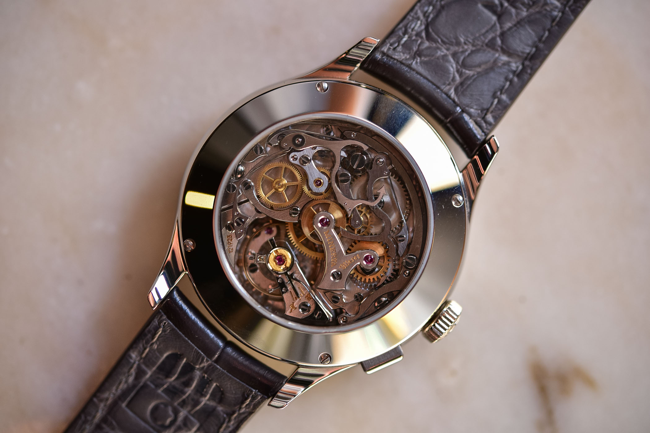 The main plate is adorned with circular graining, while the bridges – including the nice V-shaped chronograph bridge – are adorned with Geneva stripes and the steel levers and springs feature straight graining. All countersinks are mirror polished and there are plenty of gorgeous polished bevels. All done by hand – of course! Each watch is water-resistant to 5 bars/50m and has been certified as having successfully undergone the brand’s Laboratory Test 500 (hours).