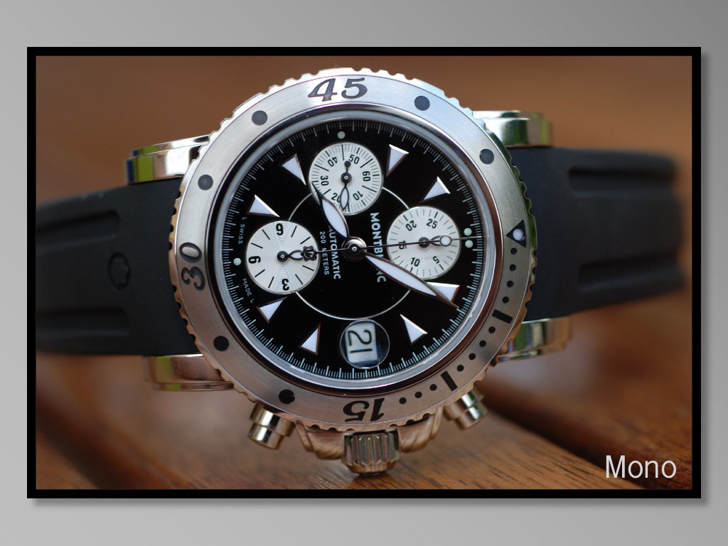 This year the Mont Blanc Sport Chronograph has been released in an all black version. No real shocking new design, but in my opinion it looks very good. Last year I owned the steel version of this watch and i was amazed by the excellent finish and quality. This might sound strange, but I can assure you that finish and quality of sometimes high-end brands can be kind questionable. This is certainly not the case here!