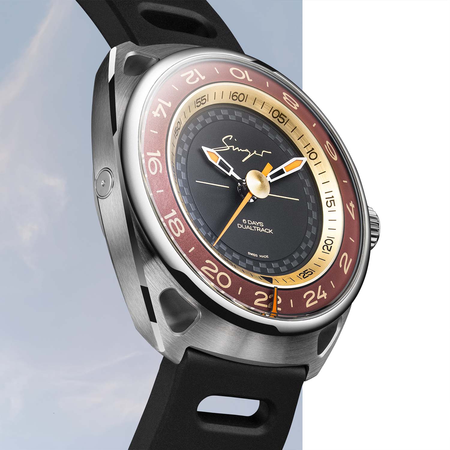 The DualTrack is paired with a signature openworked rubber strap with a steel folding buckle. It will be available in June 2026 and retails for CHF 22,500 (excl. tax). More information at singerreimagined.com.