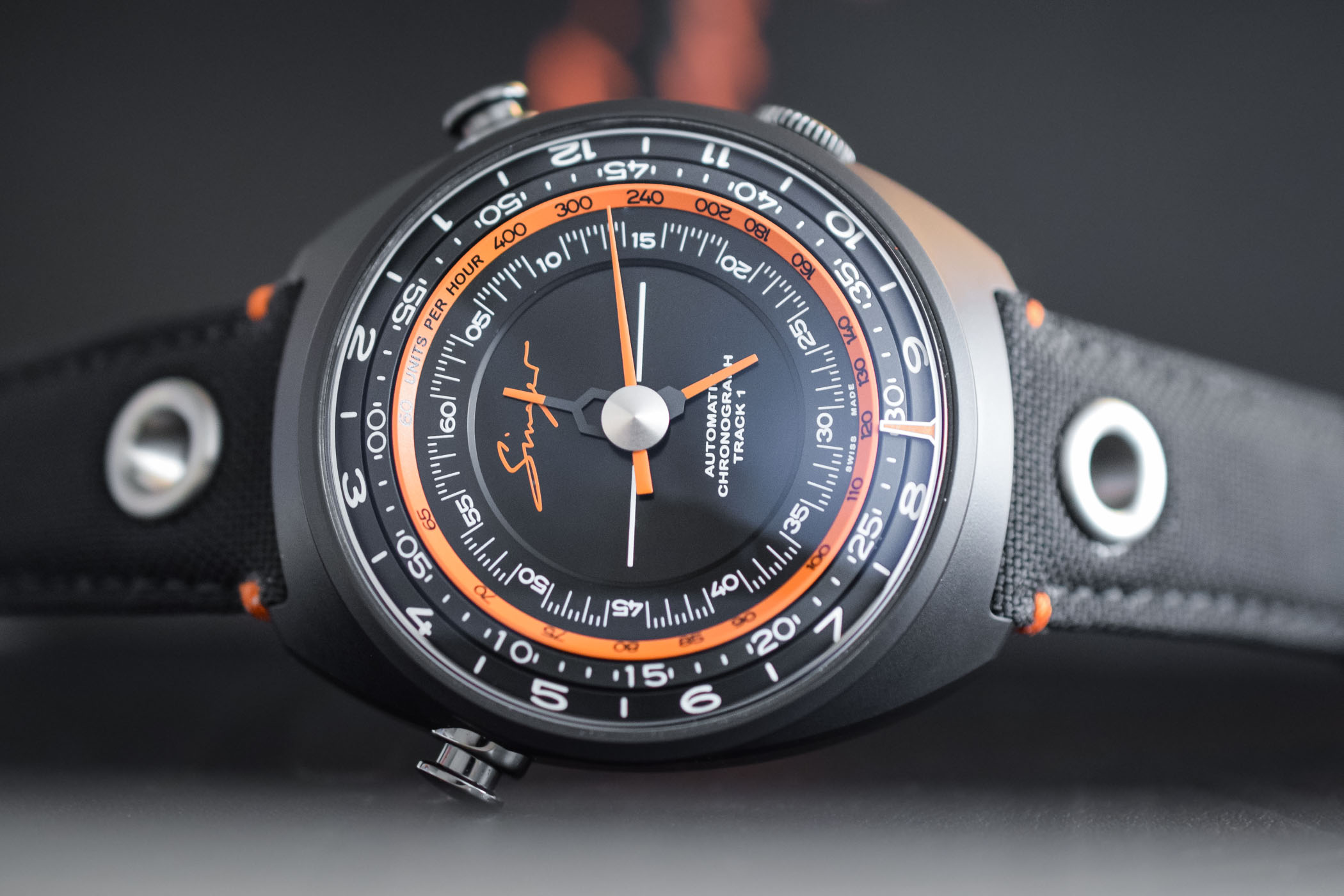 Following the introduction of the Launch Edition in June 2017, a technical titanium version, and the Geneva Edition in January 2018, a vintage-oriented version with a stunning pale yellow gold case, Singer Reimagined now unveils the third version of its impressive chronograph. Named the Track 1 Hong Kong Edition, this third iteration is a sportier take on the concept, with its black Ceramic-Aluminum case and bold orange accents.