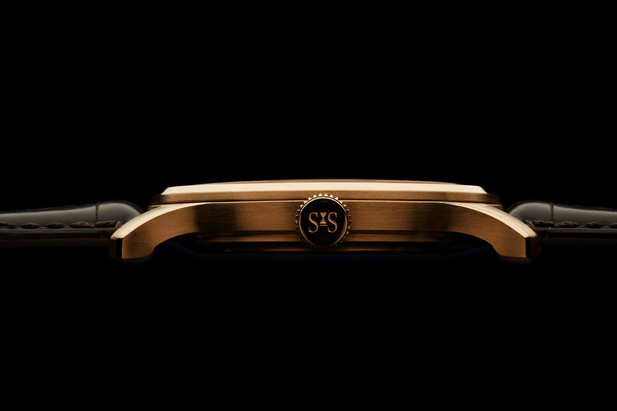 The materials used and the quality of the finish are uncompromisingly high, one of the characteristics of the Sjöö Sandström company, but there is one other striking feature however; it is very thin – only 7.8mm – and we’re talking about an automatic self winding watch here, so that is thin. And the reason for that is down to the Swiss end of the arrangement, because the SSG9 movement comes from the highly regarded Vaucher Manufacture in Val de Travers, whose Calibre 5401 from their Private Label Movement division provides the watchmaking expertise behind the Royal Capital, making it a bona-fide contender in the luxury sector. With its micro rotor winding system neatly tucked away within the confines of the movement’s body, the finished Cal.5401 measures only 2.6mm tall, and the plate surfaces have been given perlage and Cotes de Genève decoration with additional gold lettering and detailing.