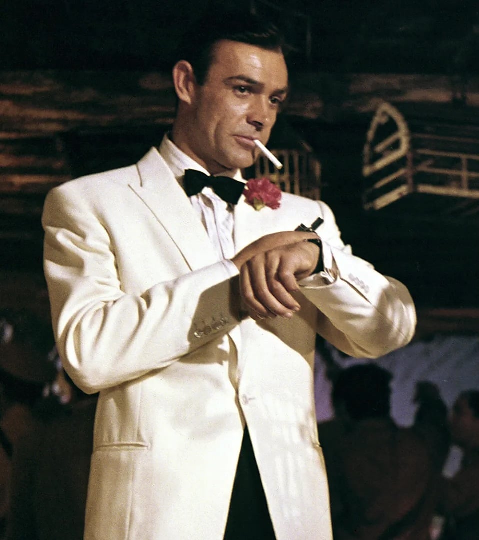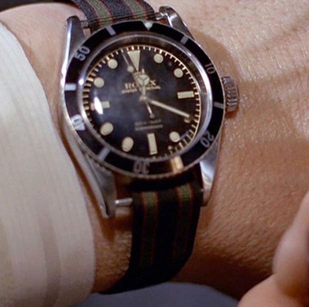 The third Bond movie was Goldfinger in 1964, which has an opening sequence that almost made the Submariner a character of its own. What’s particularly compelling about this pre-title scene is how the Submariner seamlessly goes from a necessary diving tool to a timer to synch with a bomb to a luxury watch that complements a white tuxedo, all within a matter of minutes. Here’s the setup – Sean Connery emerges from the water in a diver’s dry suit (not a wetsuit, as many believe) with scuba gear, wearing a decoy seagull on his head as a diversion as he approaches just below the surface. He fires a grapple gun to scale a wall, takes out a guard and rushes to a secret drug lab, where he spreads plastic explosive on flammable barrels and then sets a detonator timer. It’s here where he checks his Submariner ref. 6538 on a NATO strap (over the dry suit sleeve) against the timer and then rushes out. He removes the dry suit to reveal a clean white tuxedo underneath and ambles into a Central American club with the Submariner now under cuff. As he lights a cigarette, he checks the time on his Rolex, waiting for the imminent explosion that soon rocks the building. As everyone panics and evacuates, he strolls over to the bar where he discusses the success of the mission with his contact, Sierra. And the Submariner was now the coolest dive watch in the world as everyone wanted to secretly cosplay as Bond, from the beach to a bar to a formal event.
