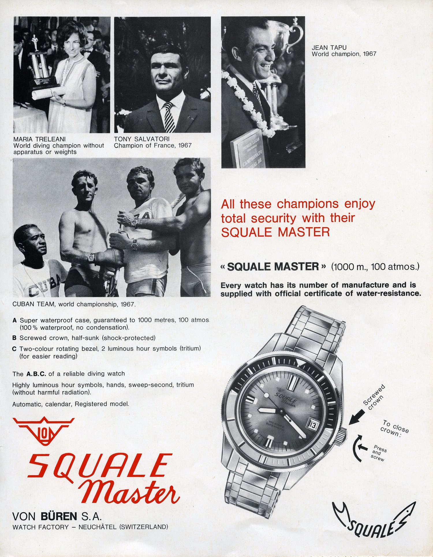 Squale dates back to 1948 when it was founded by Von Buren S.A. to supply various companies with cases, dials, hands and more. These would find their way into some of the most respected dive watches in history, including the case for the original Blancpain “Bund” Fifty Fathoms. The company’s logo appeared on a wide range of brands as secondary branding, attesting to Squale’s quality and know-how. By the late 1950s Squale would start producing watches under its own name, and since then has focused on dive watches only.