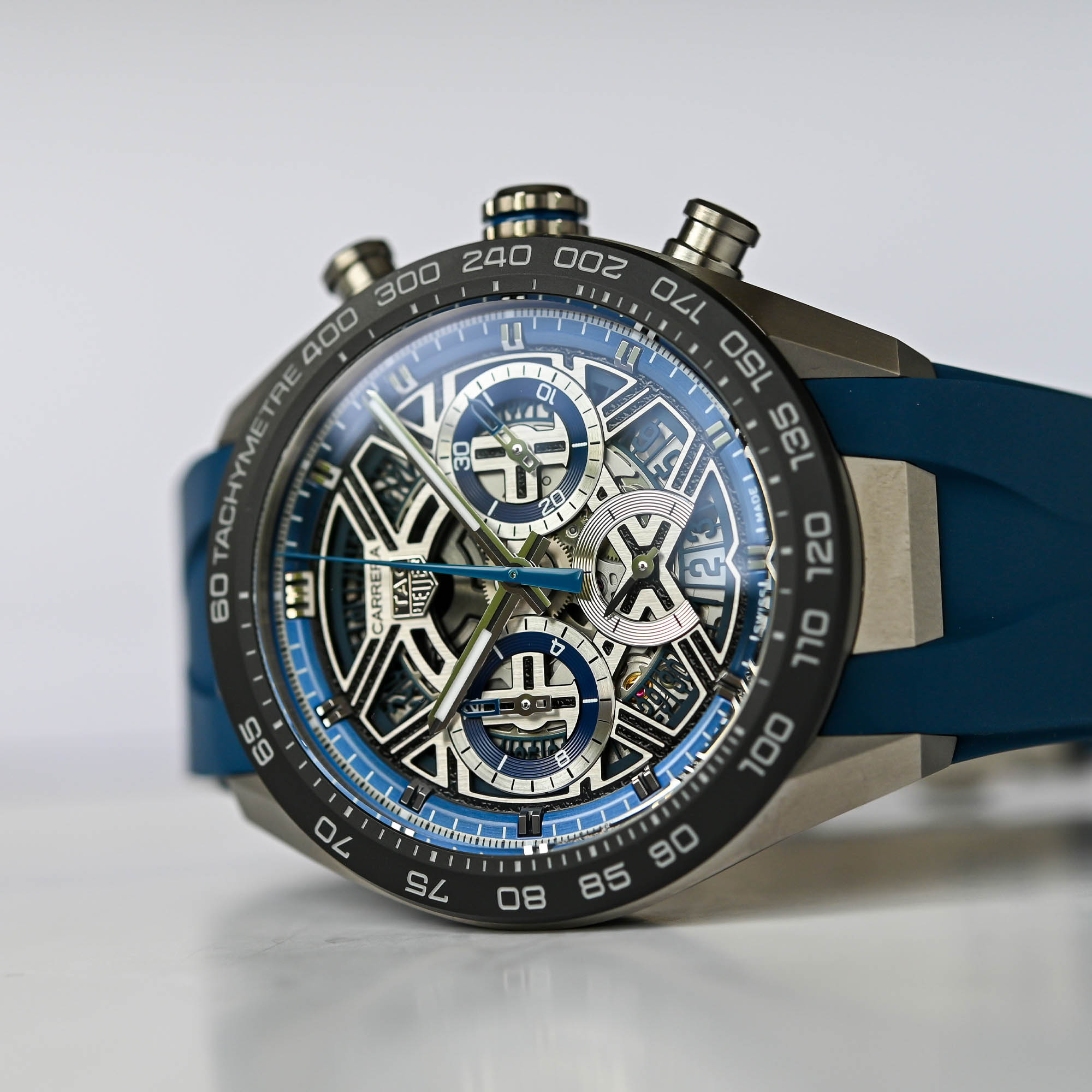 This year, TAG Heuer is expanding its lineup by introducing a new collection, the Carrera Extreme Sport series with 6 different models, blending the brand’s legendary racing heritage with advanced materials and innovative design. Earlier this year, the brand unveiled the Carrera Chronograph x Porsche 963 in time for the 24h of Le Mans, paying tribute to the car competing in this iconic endurance race. This watch, a bold and modern interpretation of the racing chronograph, hinted at what would come. The new Carrera Chronograph Extreme Sport collection builds on the openworked dial design, reminiscent of the ideas also seen in the Carrera Calibre Heuer 01 from 2015 and is a development of this bold, modular collection. Here’s our early hands-on with these new watches, which are presented in various colours and made with high-end materials.