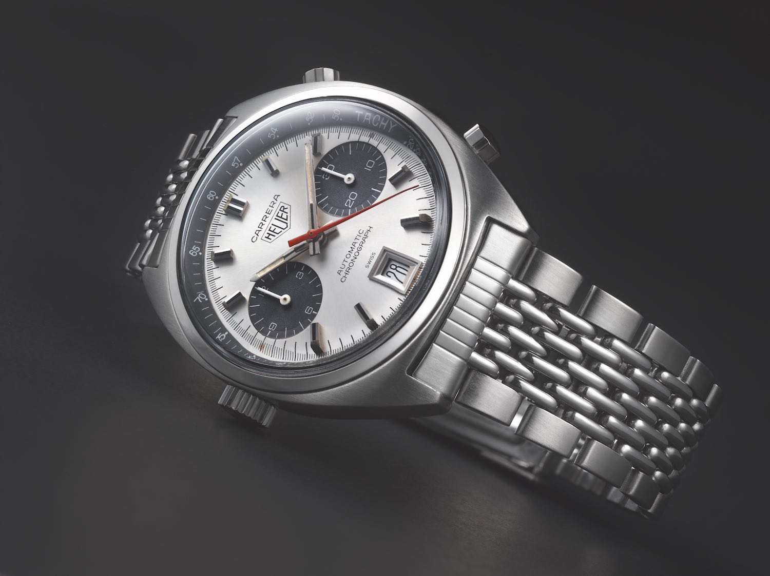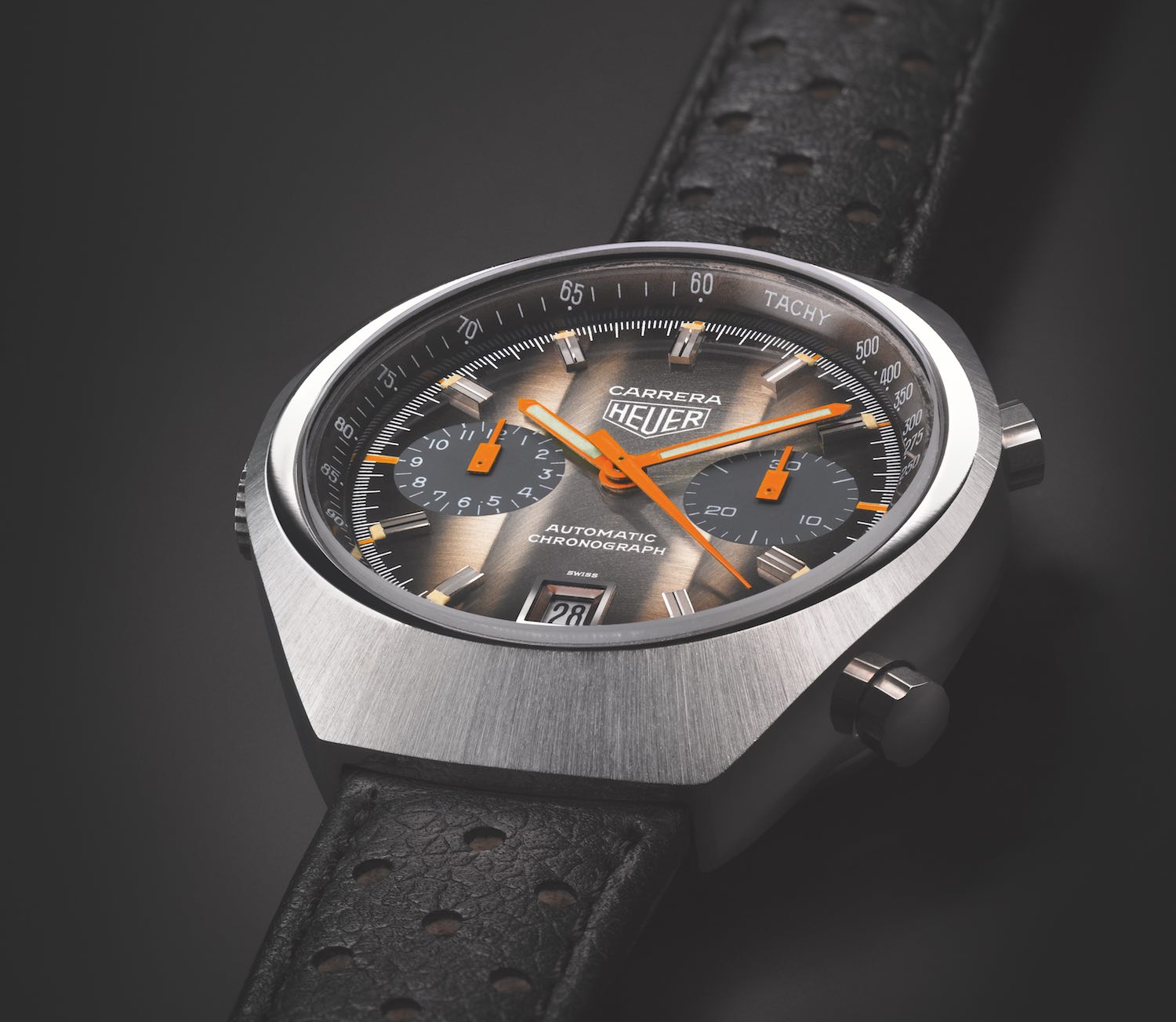In 1969, Heuer, together with Buren, Hamilton, Breitling and Dubois Depraz, launched one of the first automatic chronographs, the legendary Calibre 11 with a micro-rotor. The introduction of this movement, the trend for larger and more colourful watches and the growing interest in Formula 1 (which Jack Heuer sponsored massively) drastically changed the face of the Carrera.