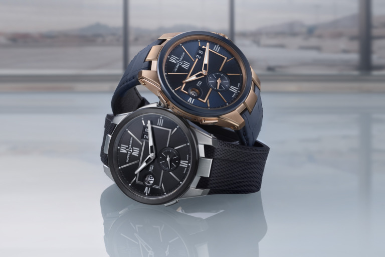 GMT or Dual-Time watches are timepieces capable of displaying more than one time-zone. By the mean of an additional central hours hand (often linked to a 24H scale on the dial), or a rotating bezel with additional hour scale, or a sub-dial with an additional indication of the time, the wearer can be informed of both the home-time (his departure position) and the local time (the time-zone where he is currently travelling). It is also used to display an extra time-zone for people working in international environments.